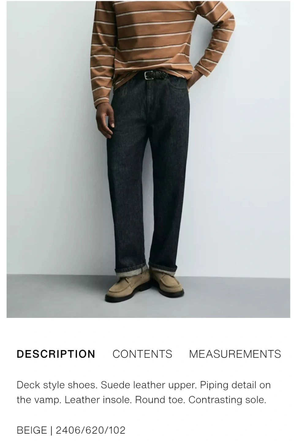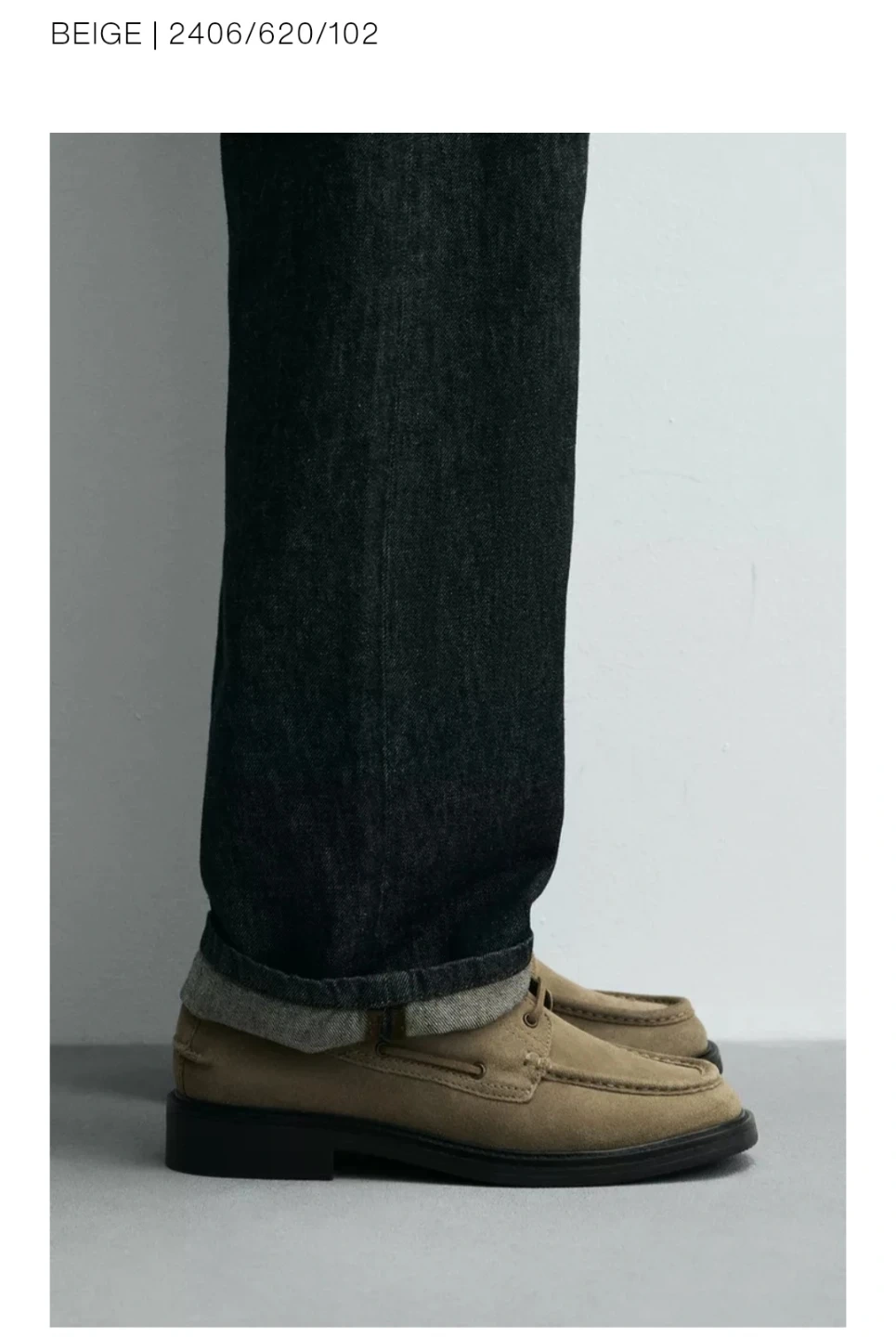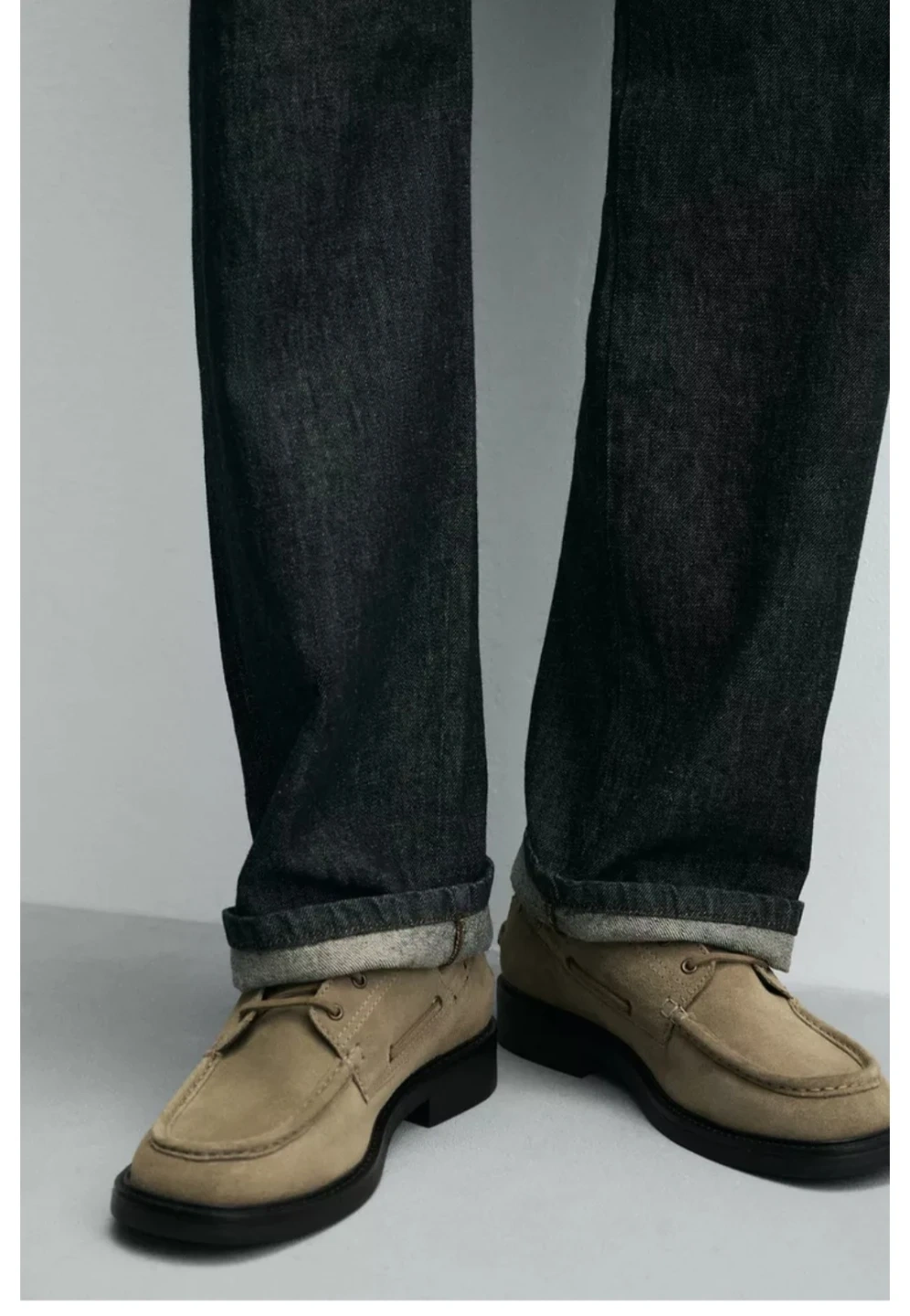 Zara Man Beige Suede Leather Dress Deck Shoes