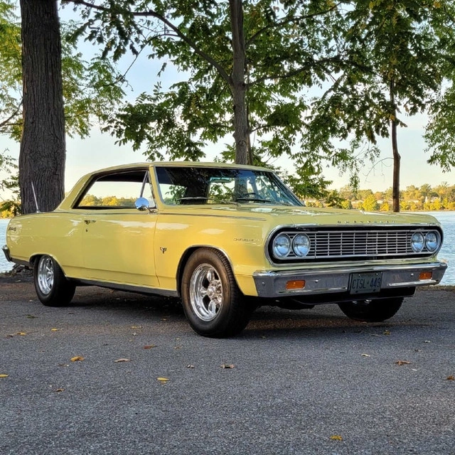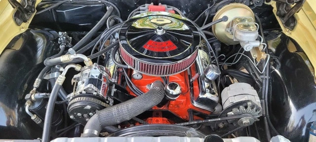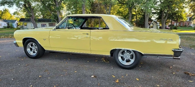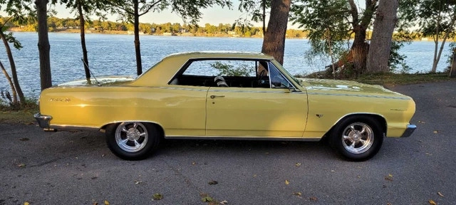 True SS (GM Oshawa 5837 code) - Full frame off rotisserie restoration - Goldwood yellow with black interior. Features a 327 V8 with Holley Sniper fuel injection, Powerglide transmission, and new aftermarket air conditioning. Upgraded power steering, power brakes with front discs, and a quick ratio steering box. QA1 coilover double adjustable suspension with adjustable ride height. 10-bolt rear end with 3.73 gears. Ceramic headers, aluminum radiator, and stainless steel dual exhaust with optional cutouts. New front spoiler (Spoilers by Randy). Autometer gauges, American Racing Torq Thrust II wheels, and Mickey Thompson tires. Tall upper ball joints and rear sway bar. Boss radio with Pioneer speakers. Excellent paint finish, minor flaws shown in photos. $65,000 CAD. Located in Niagara.