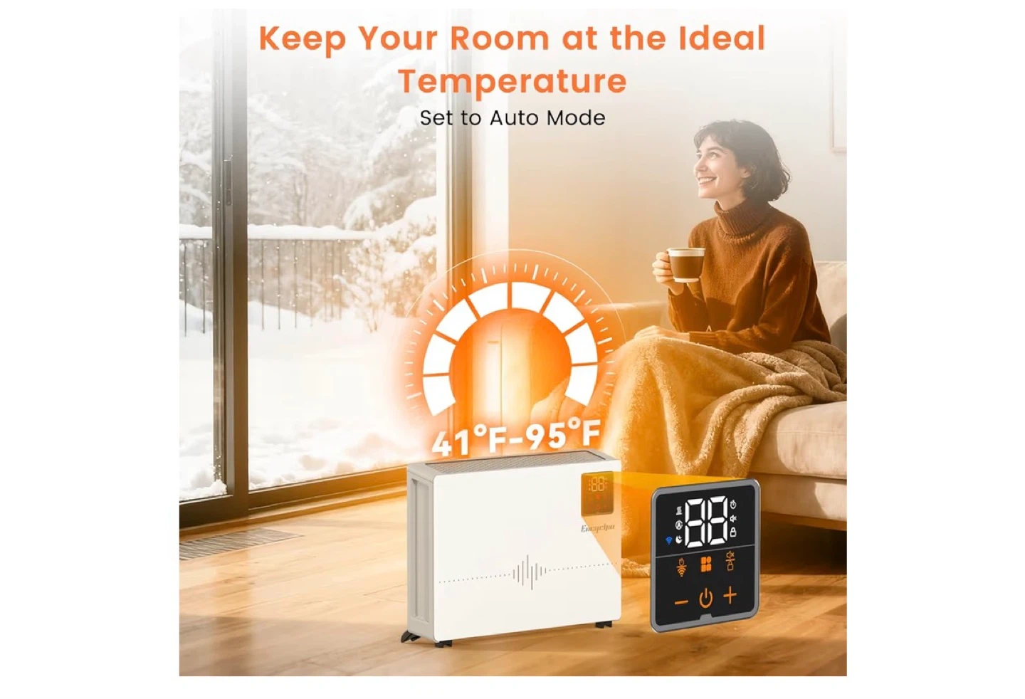 Encyclpo 1500W Electric Space Heater with Remote & App Control