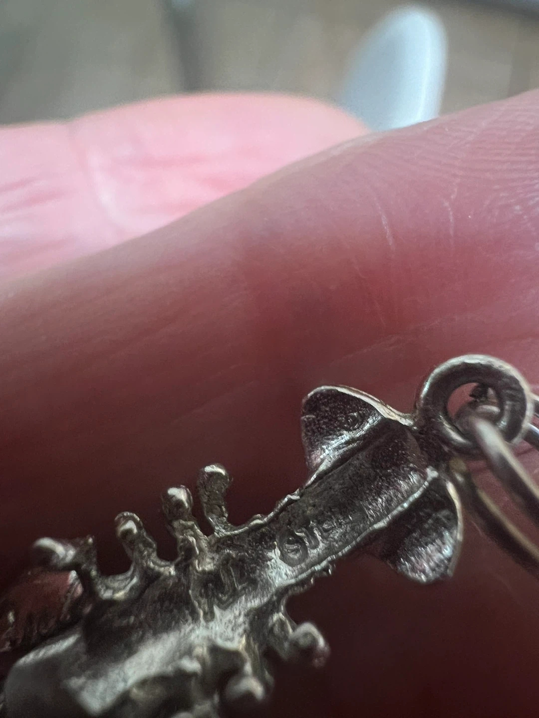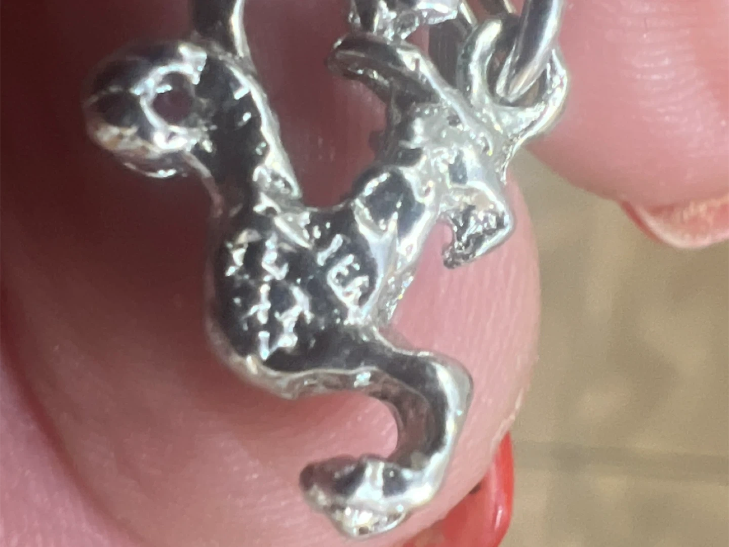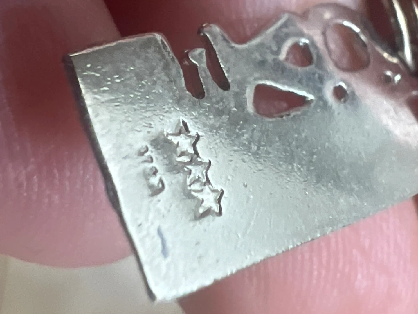 A vintage sterling silver charm bracelet featuring multiple detailed charms. It includes a 'Dec 25' charm and a 'God Bless Our Home' charm and others