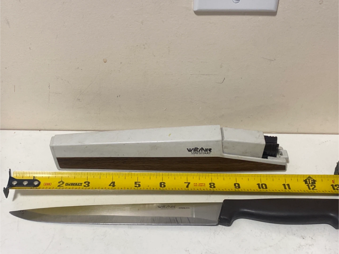 8” Wiltshire Stay Sharp Knife, with protective case, which holds the sharpener.