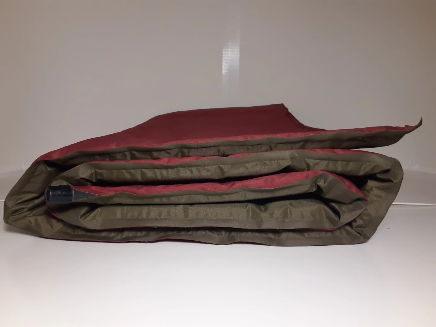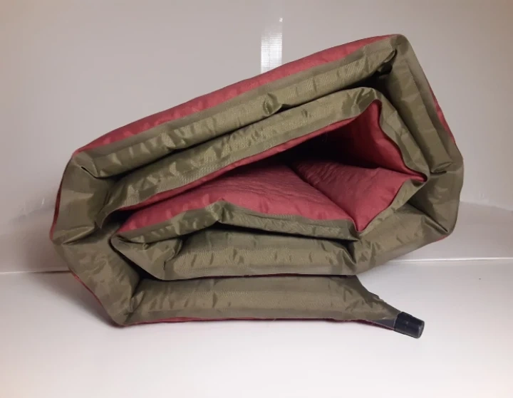 Therm-a-Rest CampLite self-inflating mattress, measuring in at 75"x26" and roughly 1 1/4" thick when inflated. It's in great shape and ready for your next camping adventure! Cushiony, not super firm.