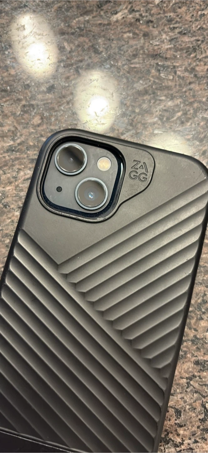 Has always been in the case and I replaced the glass screen protector a few days ago. Comes with a stand up case.