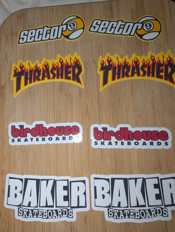 Stickers start at $3. T-shirts start at $20 for a large logo on the front, $25 for a dual-sided design (large back, small breast logo), or $30 for large front and back designs. You can also add your name or other custom text.