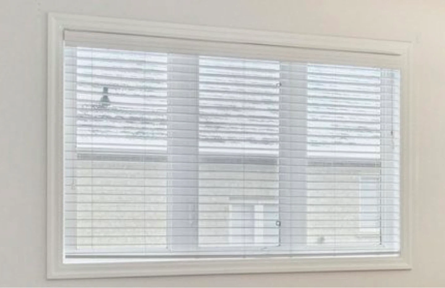 These white faux wood blinds are a great addition to any room. They're made from durable, easy-to-clean material. We have a few sizes, renovating house needs to go asap!