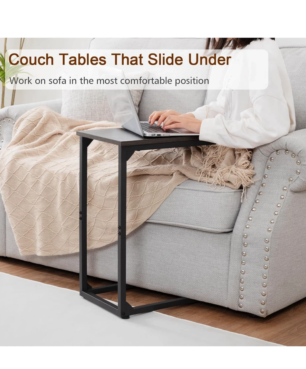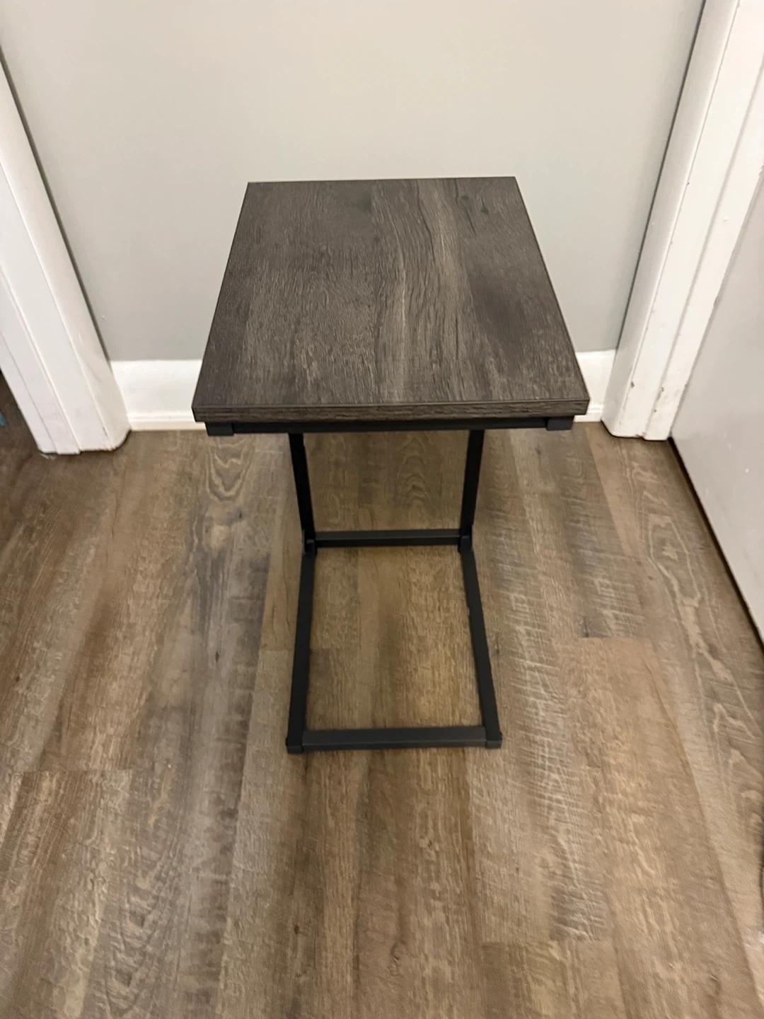 This C-shaped end table is perfect for small spaces! It's great for using next to a couch or bed.