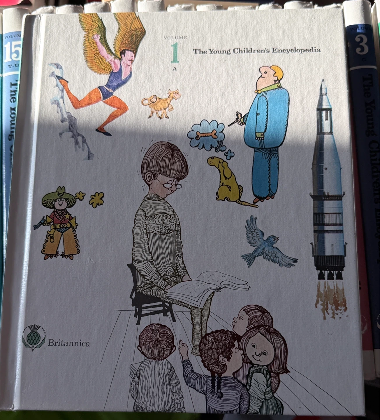 Britannica's The Young Children's Encyclopedia. This set contains multiple volumes, each covering different letters and topics. A great educational resource for young learners!