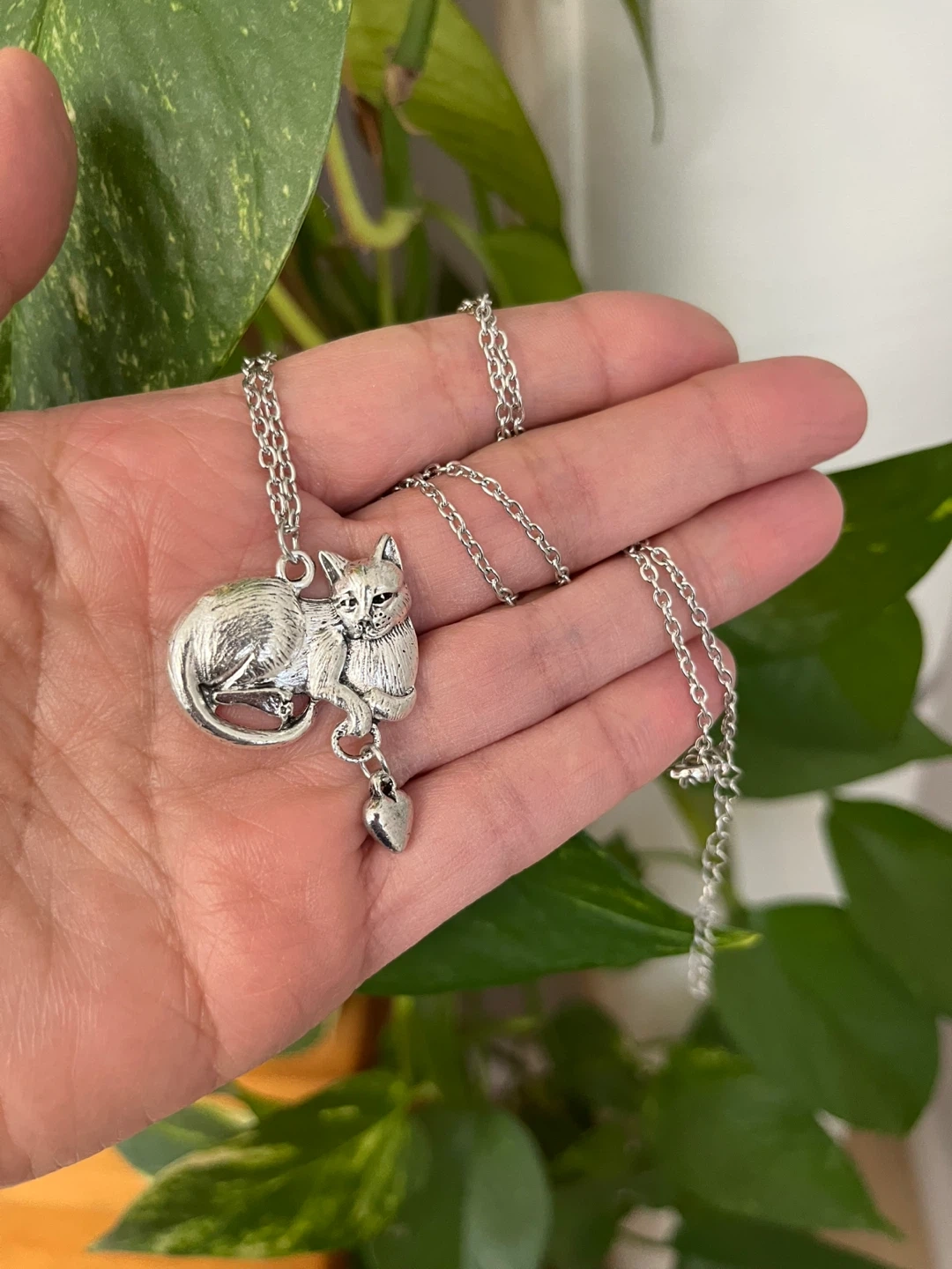 Silver-tone Cat Pendant Necklace