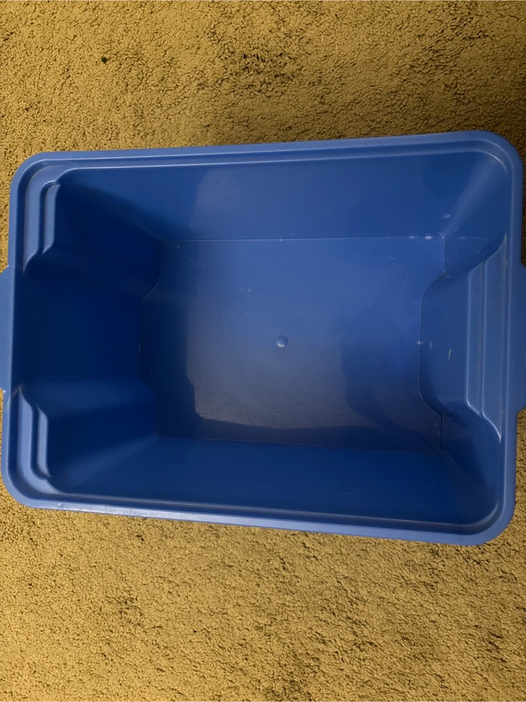 This is a blue plastic storage bin. It's made of durable plastic. This bin is useful for organizing various items around the house. It's great for decluttering playrooms or garages!