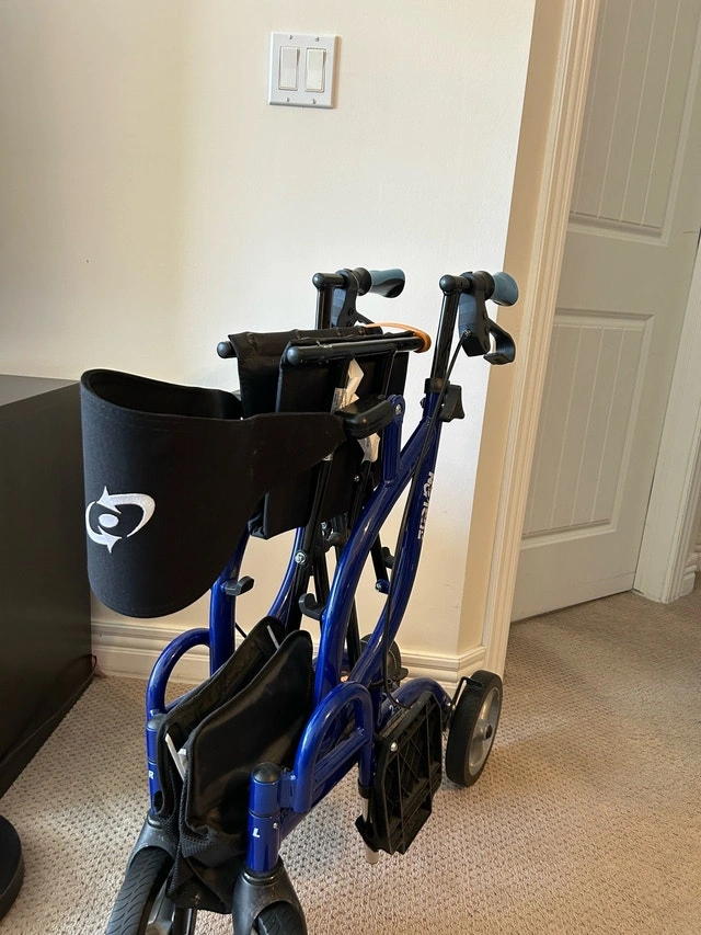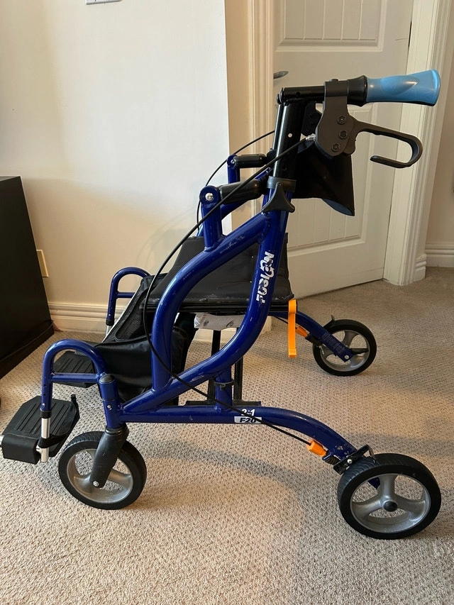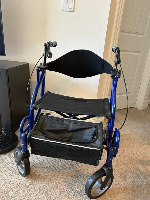 Walker that can also be used as a wheelchair. Easily collapsible and stored. Very little use. Purchased October 2024. Located in Aspen Woods SW.