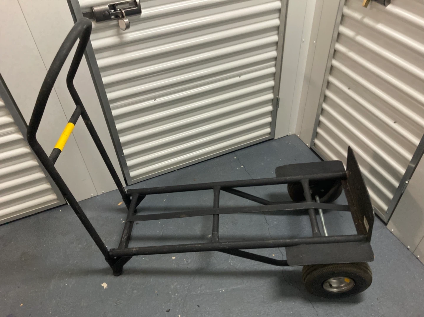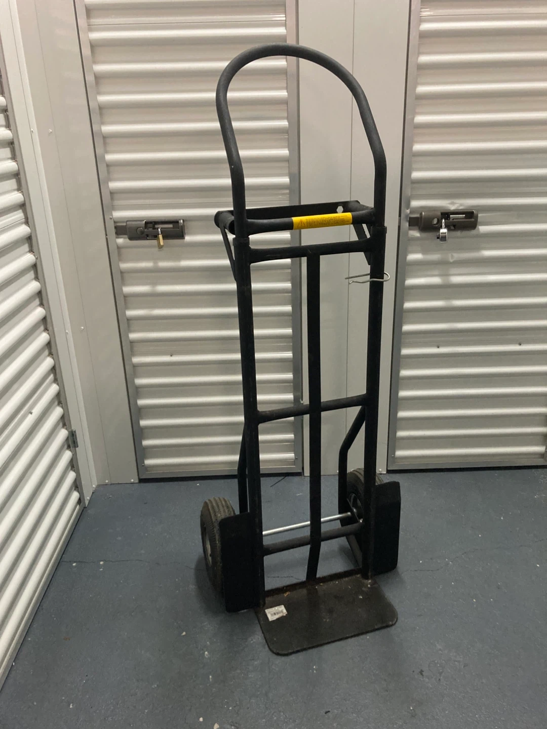 This is a sturdy black hand truck dolly, perfect for moving heavy items. It features durable wheels for easy transport. This dolly is great for loading docks, warehouses, or moving services! In prefect condition a few marks from the few times i used it but other than that its like mew!!!