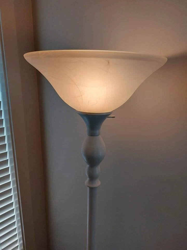 Elegant Floor Lamp with Marbleized White Glass Shade, White