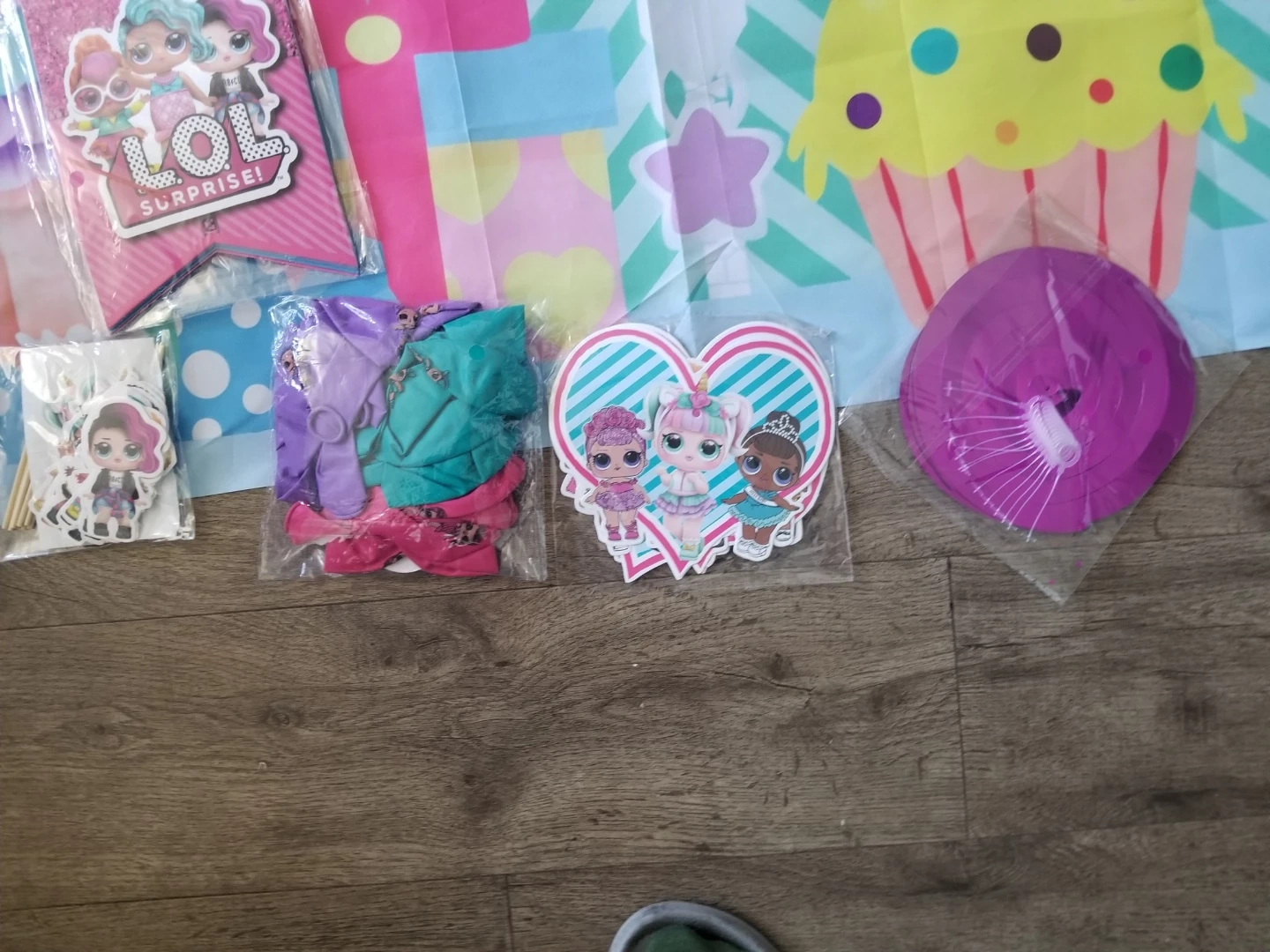 Get ready to party with this LOL Surprise birthday decoration set! Includes a banner, backdrop, balloons, cake toppers, and more to make your little one's birthday extra special Banner approximately 59x38