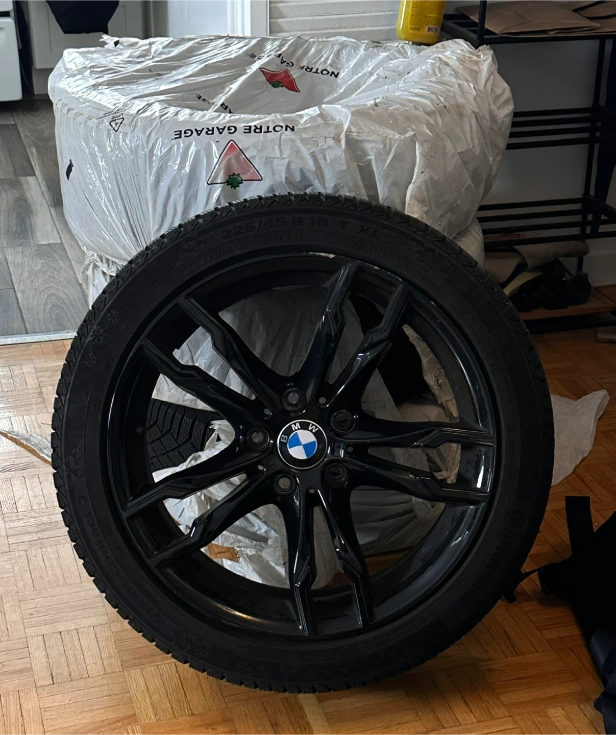 I changed my car, so I'm selling a set of four winter tires mounted on rims that I used to have on my 2017 BMW 340xi. Paid $1630 for the 18" wheel/rims + 18" tires combined, used for two seasons only(2022&2023 Winter).
