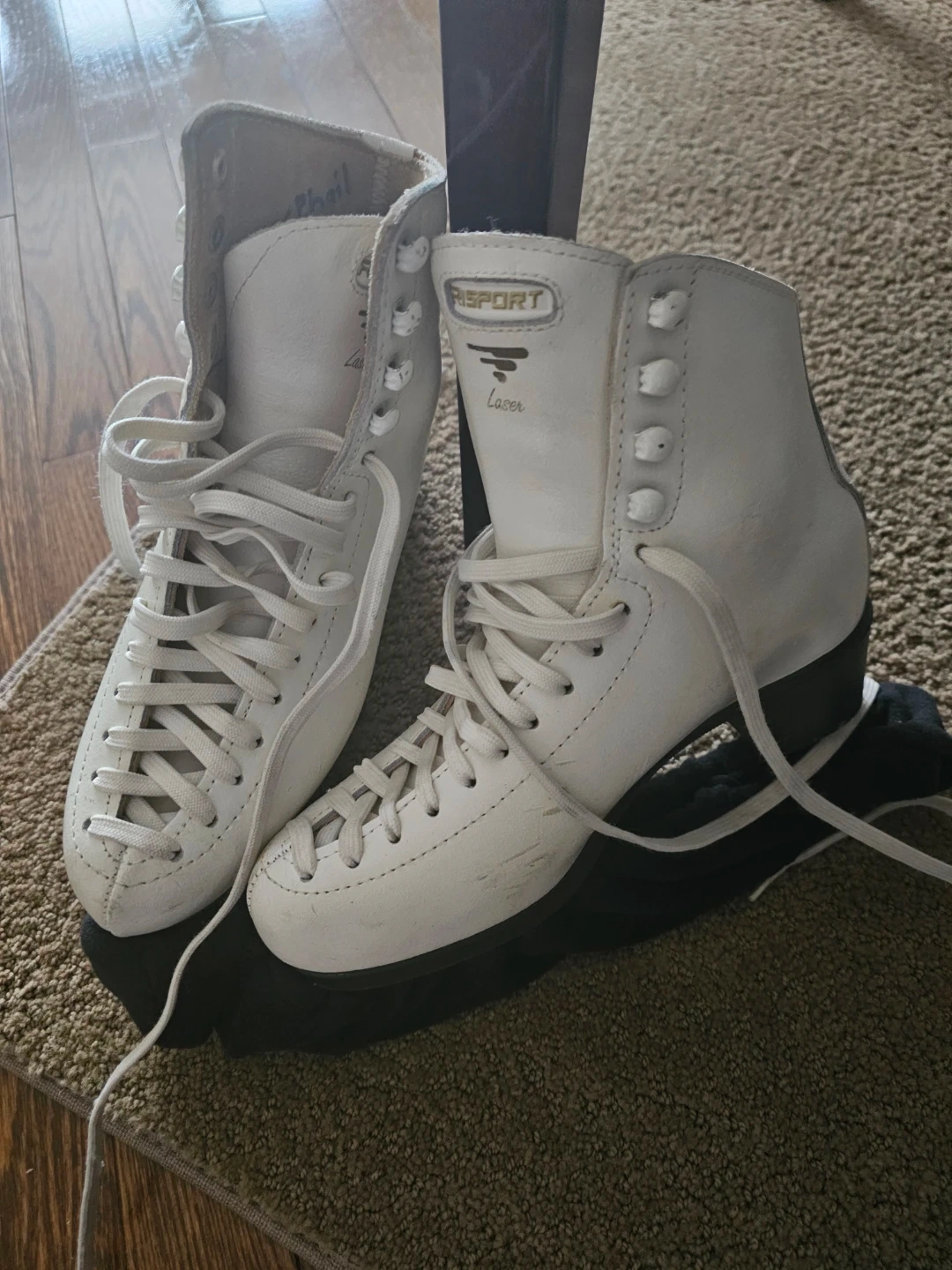 Winwell white figure skates are a great option for beginner skaters. They feature a supportive boot with laces for a secure fit. The blades are made of durable metal for long-lasting use.