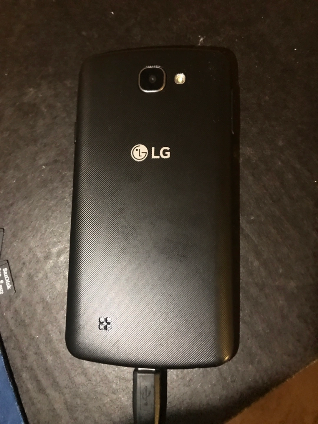 Used LG K4 Android phone. Black. Includes 8GB internal storage and 8 GB microSD card slot. Android 5.1.1. Is in good exterior condition. Comes with protective case and charger cable.