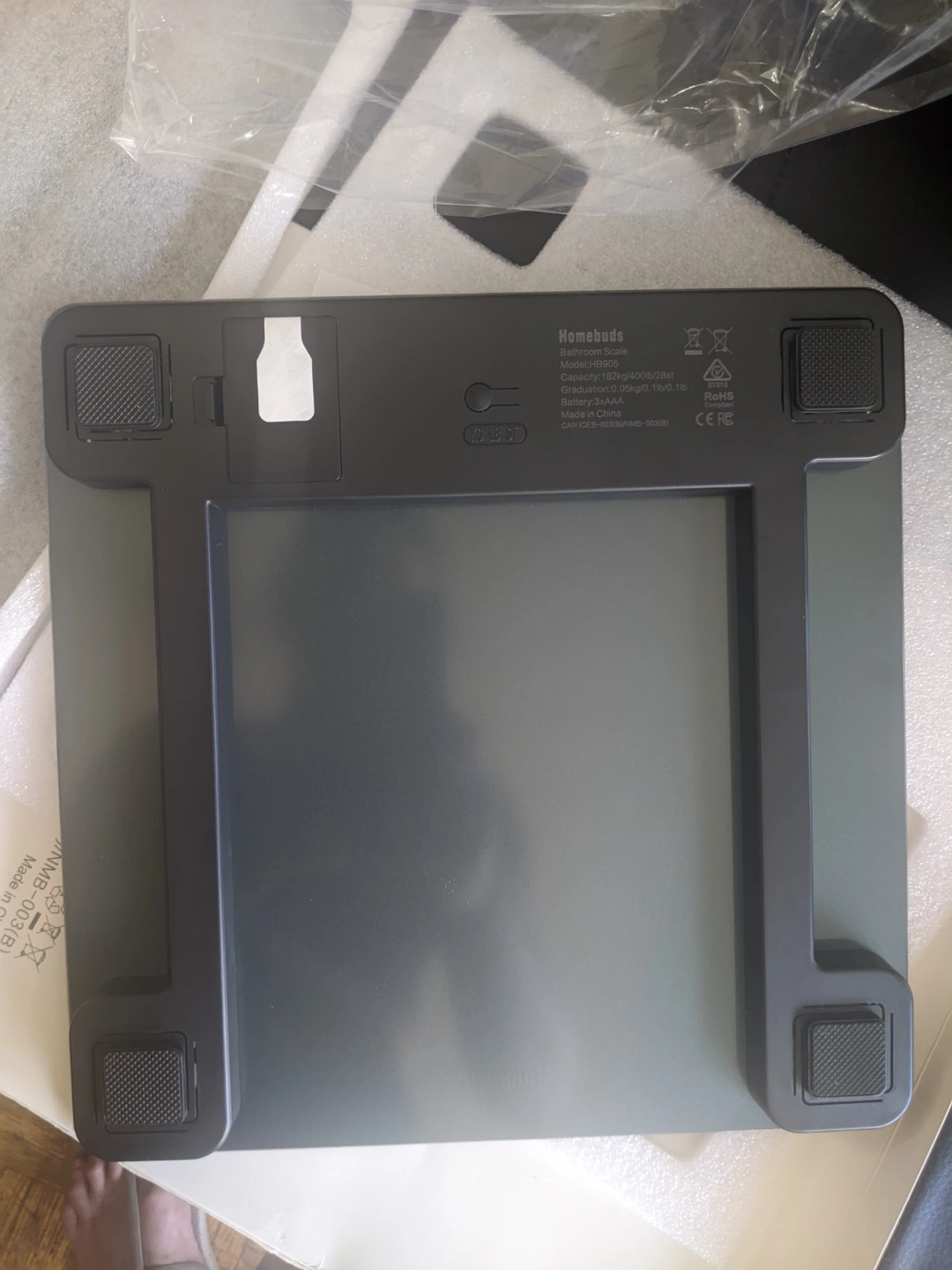New in box. Digital display. Sleek design. Measures weight in kilograms and pounds. Battery-powered.