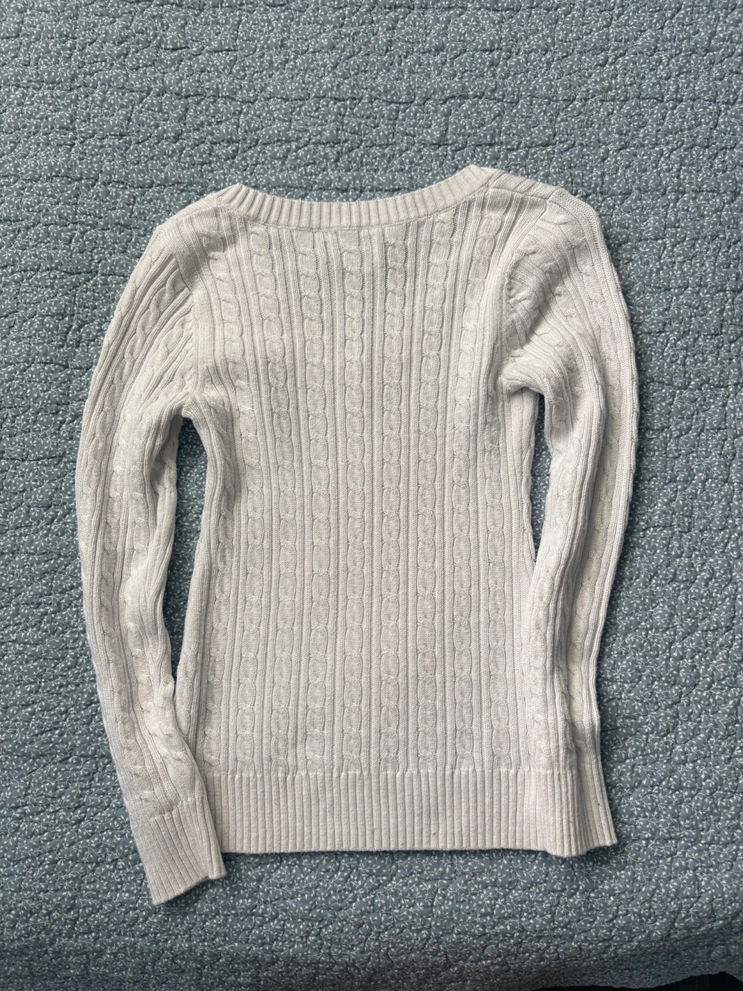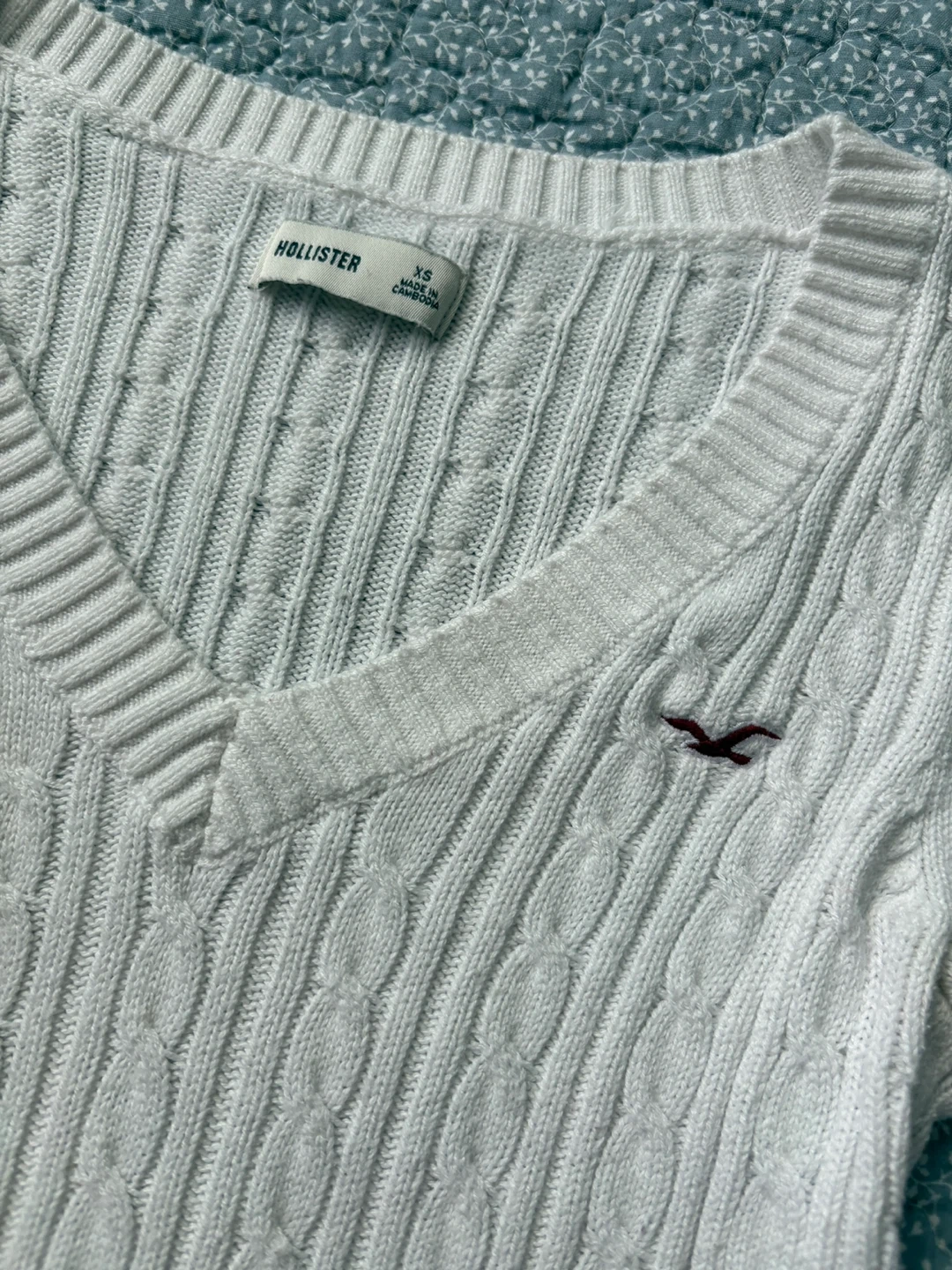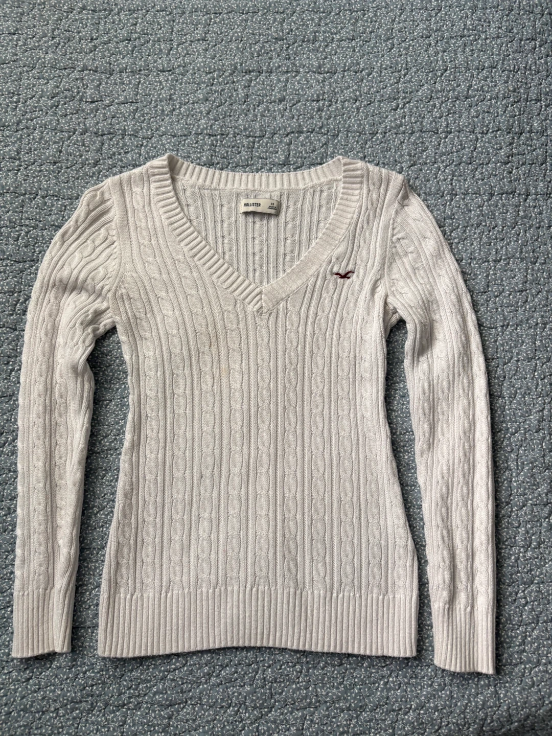White Hollister cable knit v-neck sweater