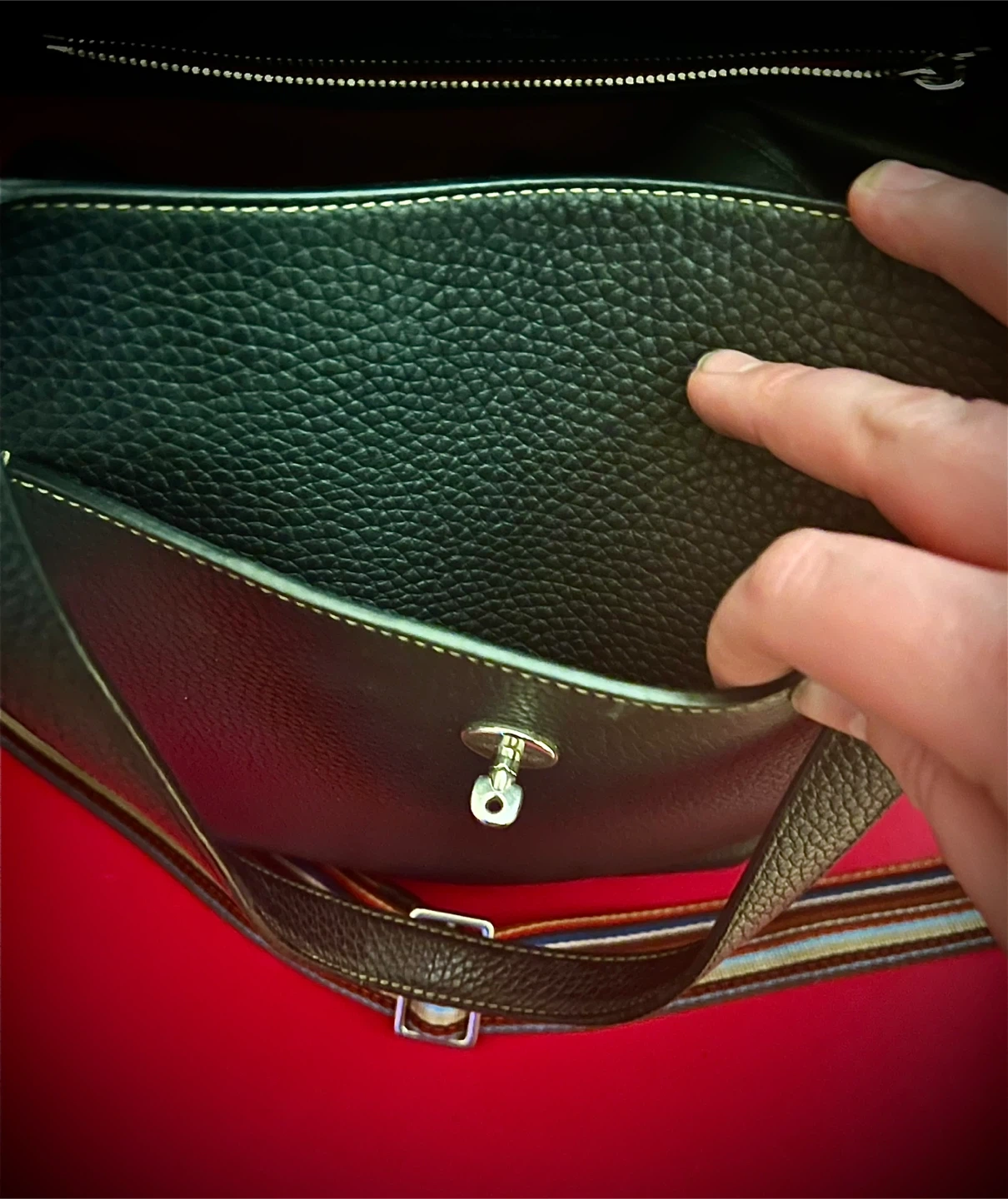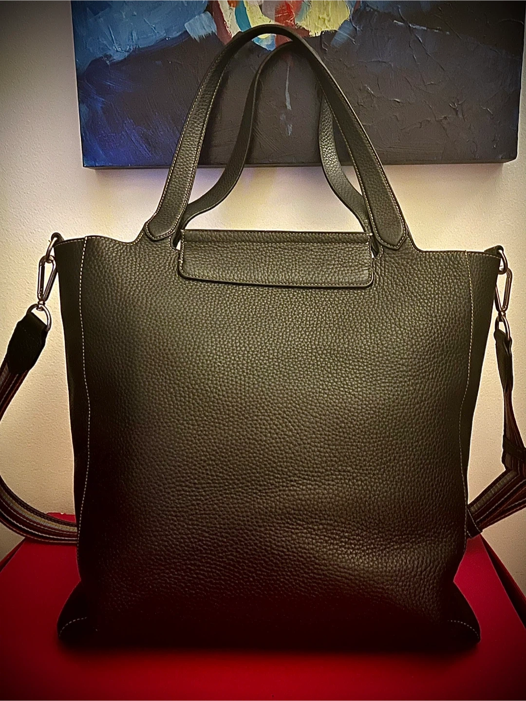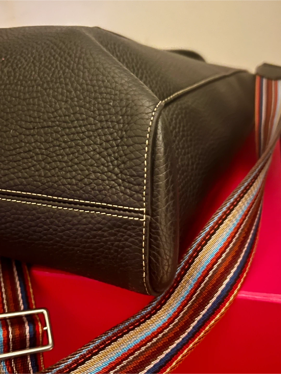 Condition: the bag is in very good used condition, only used occasionally as my office tote. Exterior leather is in excellent condition, no marks, stains, discolouration (see photos). The front clasp has superficial scratches due to use. The handles are in great condition; I mostly used the shoulder strap. The interior is very clean, aside from one ink smudge/stain (see photo). I have misplaced the dust cover while moving. Incl. is the Paul Smith x Mulberry Authenticity card. However, the bag will be authenticated through PoshMark. And I have my digital order history from SSENSE.