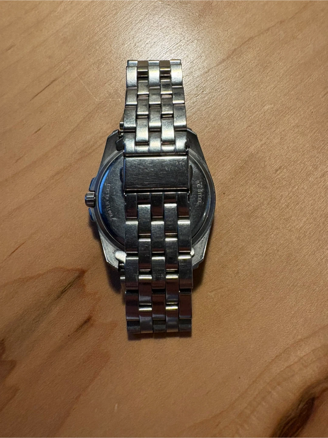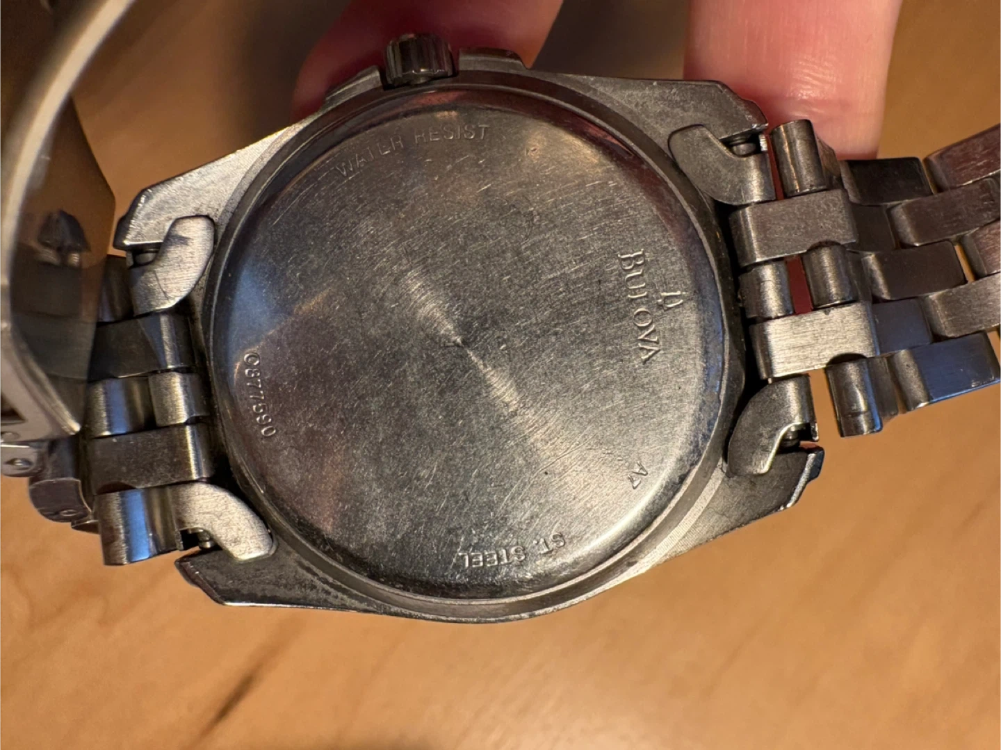 Selling a Bulova Caravelle men's watch! It features a silver-tone stainless steel band and a classic design. The watch is water-resistant and has a date display. It's in great condition and ready for a new wrist! Battery changed recently