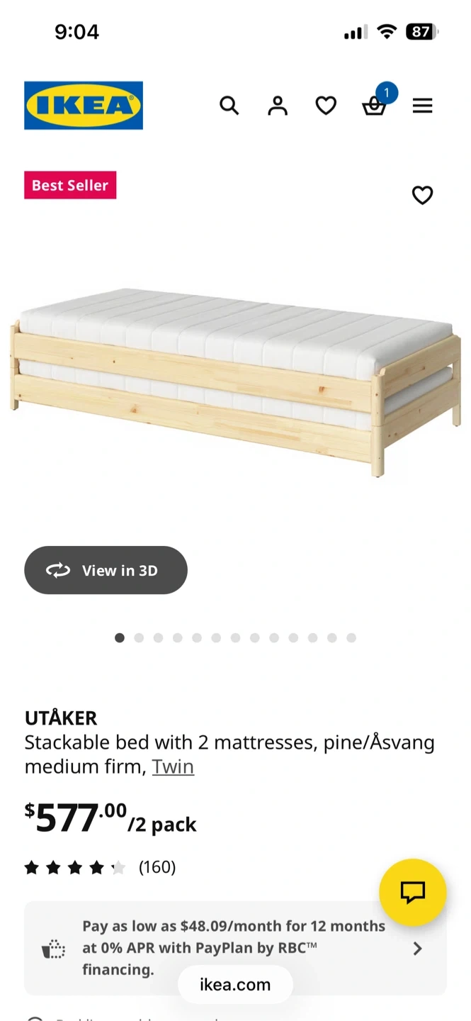 IKEA UTÅKER Stackable Bed Frame with 2 Åsvang Mattresses - Twin