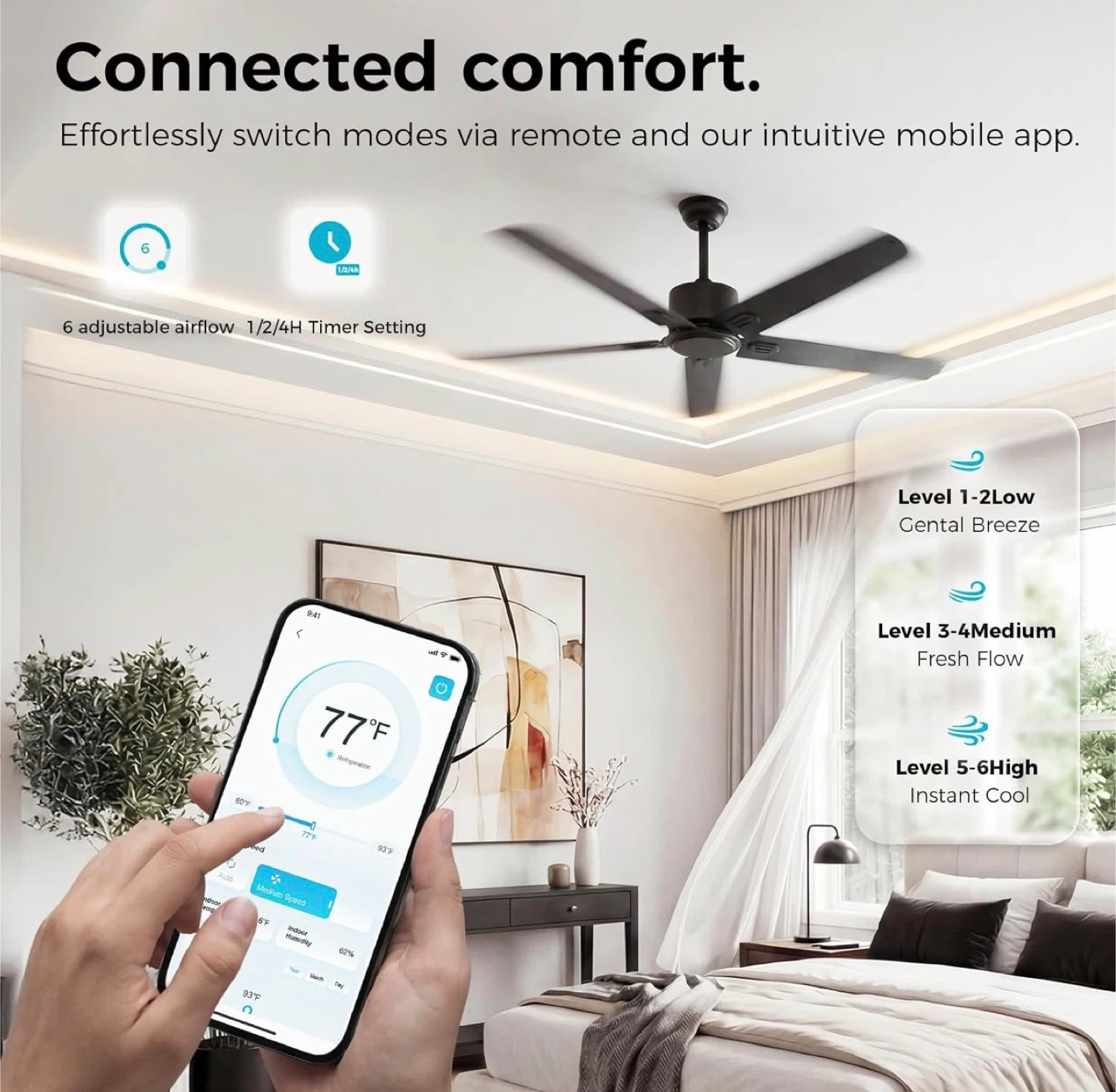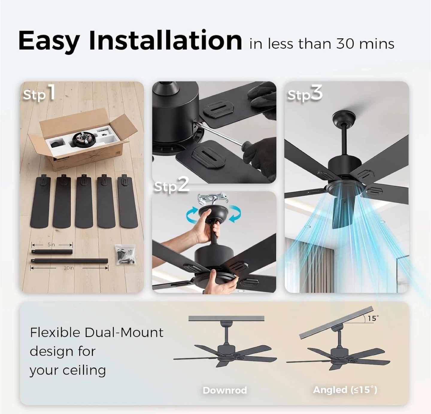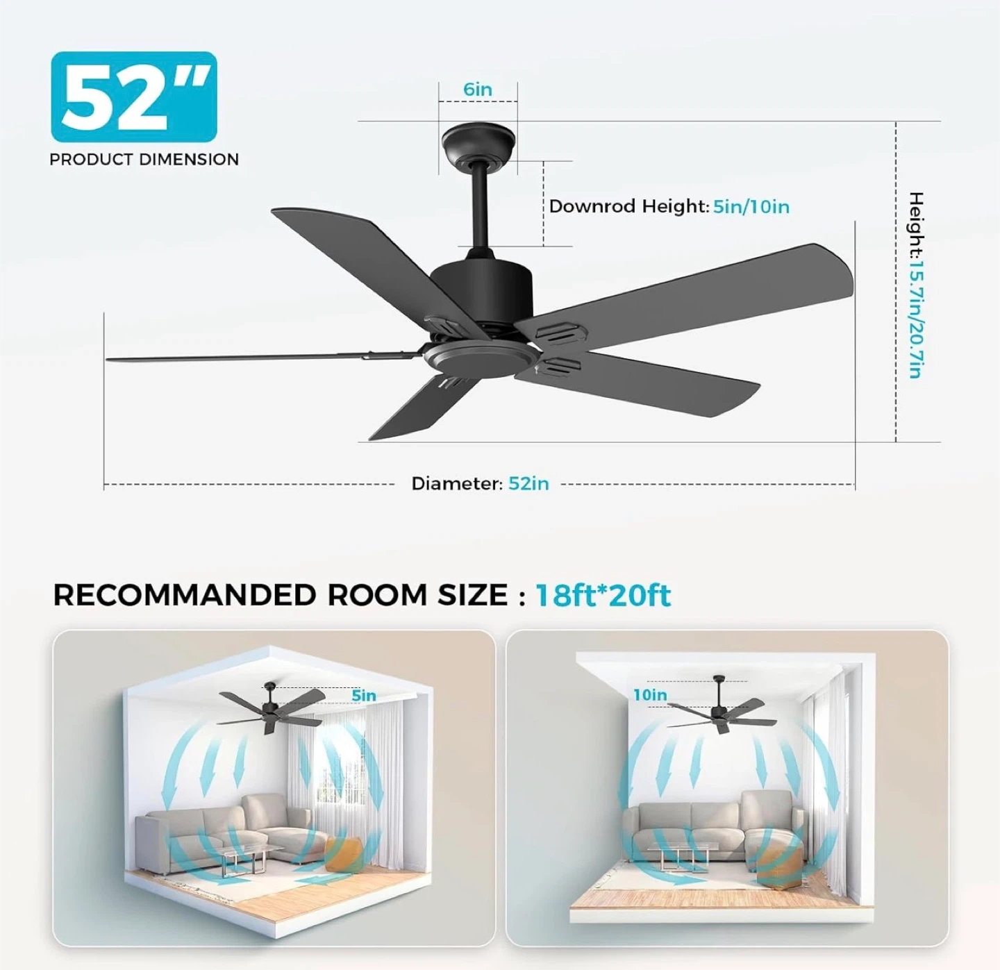52" Black Ceiling Fan with Remote & App Control