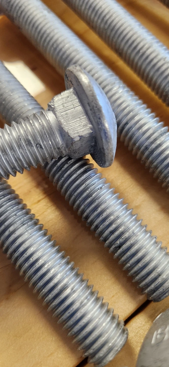 Smooth, domed head provides a semi-flush finish. Galvanized finish for durability. Square shoulder locks into material, no washer needed.