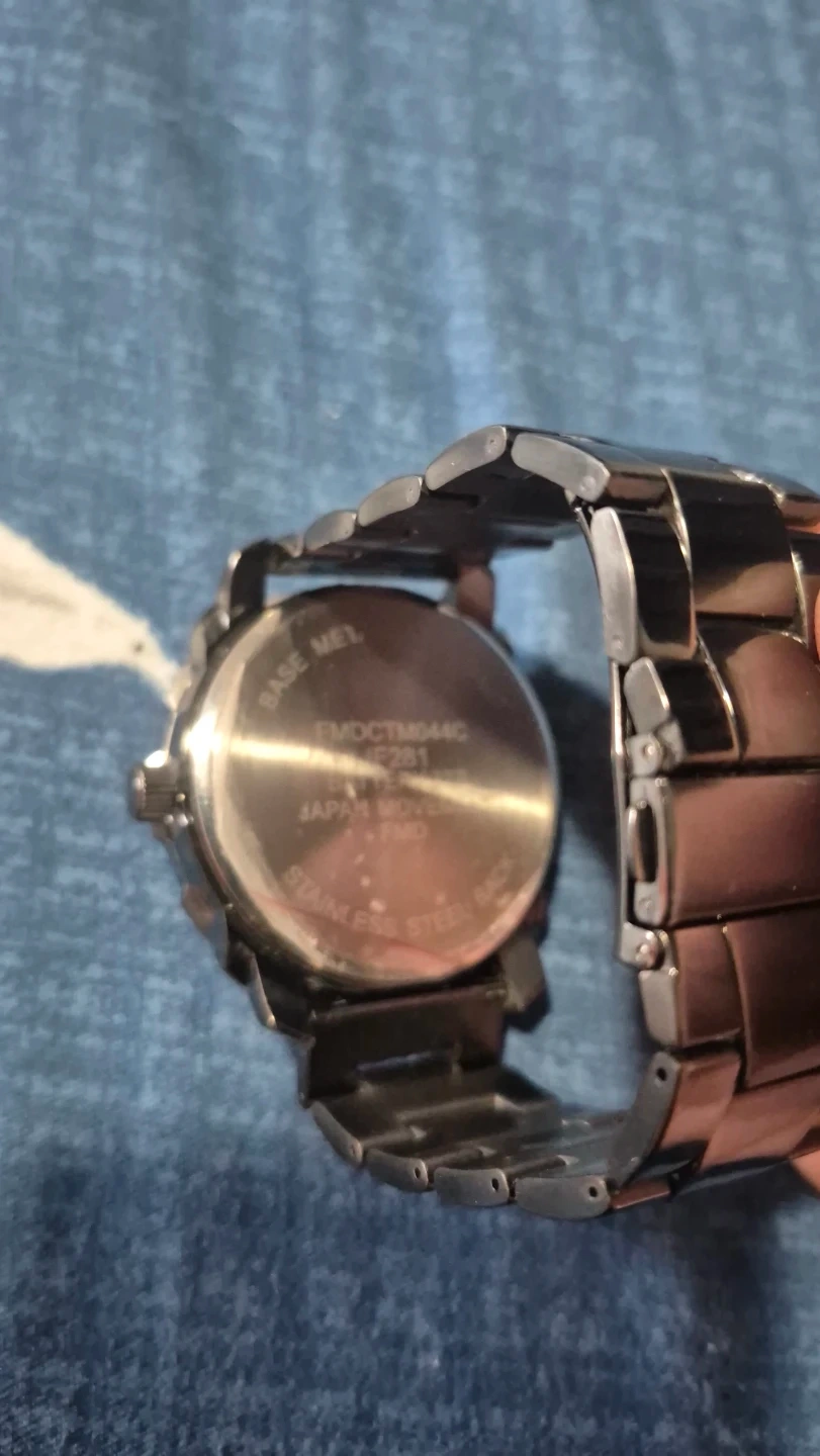This FMD watch features a Japan movement and a stainless steel back. It's a durable timepiece for everyday wear.