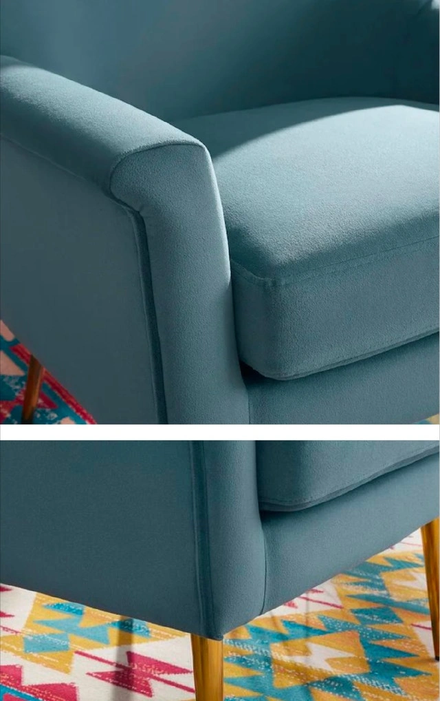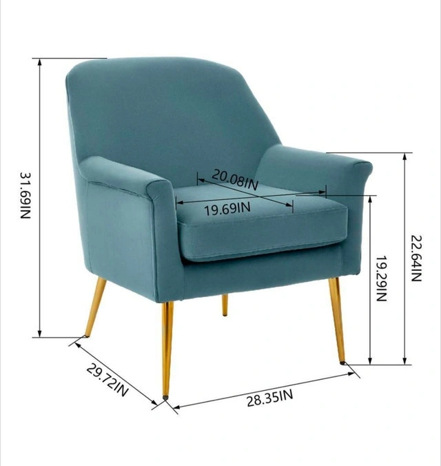 This stylish Blairmore Charleston blue upholstered accent chair features a sleek design with gold-toned legs, offering a modern touch to any living space. Brand new, still sealed in the original packaging. Looking to add a pop of colour to your reading nook? This chair is not just a seat, it's a statement! If the ad's up, the chair's available!