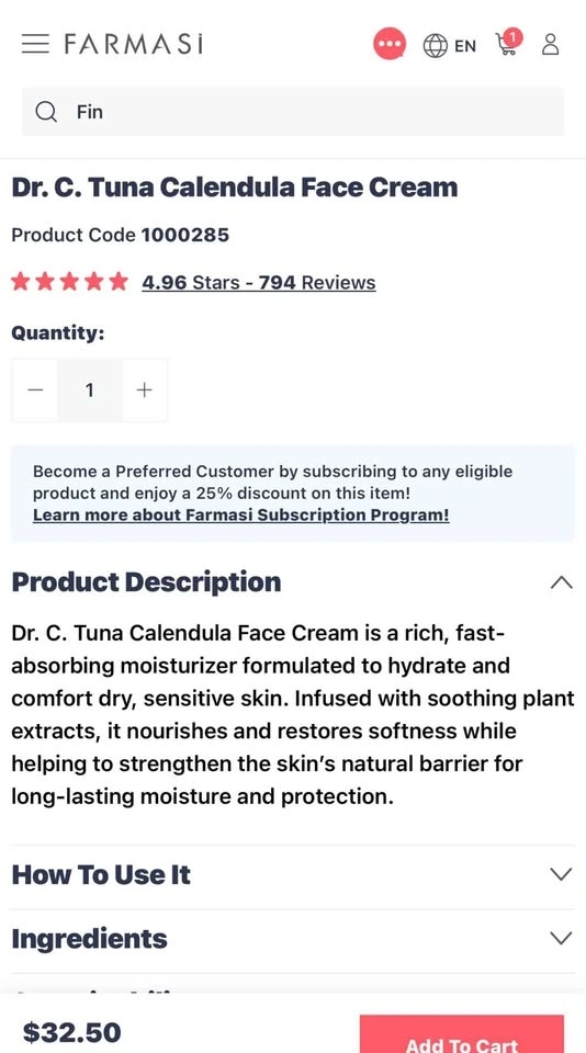 Dr. C. Tuna Calendula Face Cream is a rich, fast-absorbing moisturizer formulated to hydrate and comfort dry, sensitive skin.