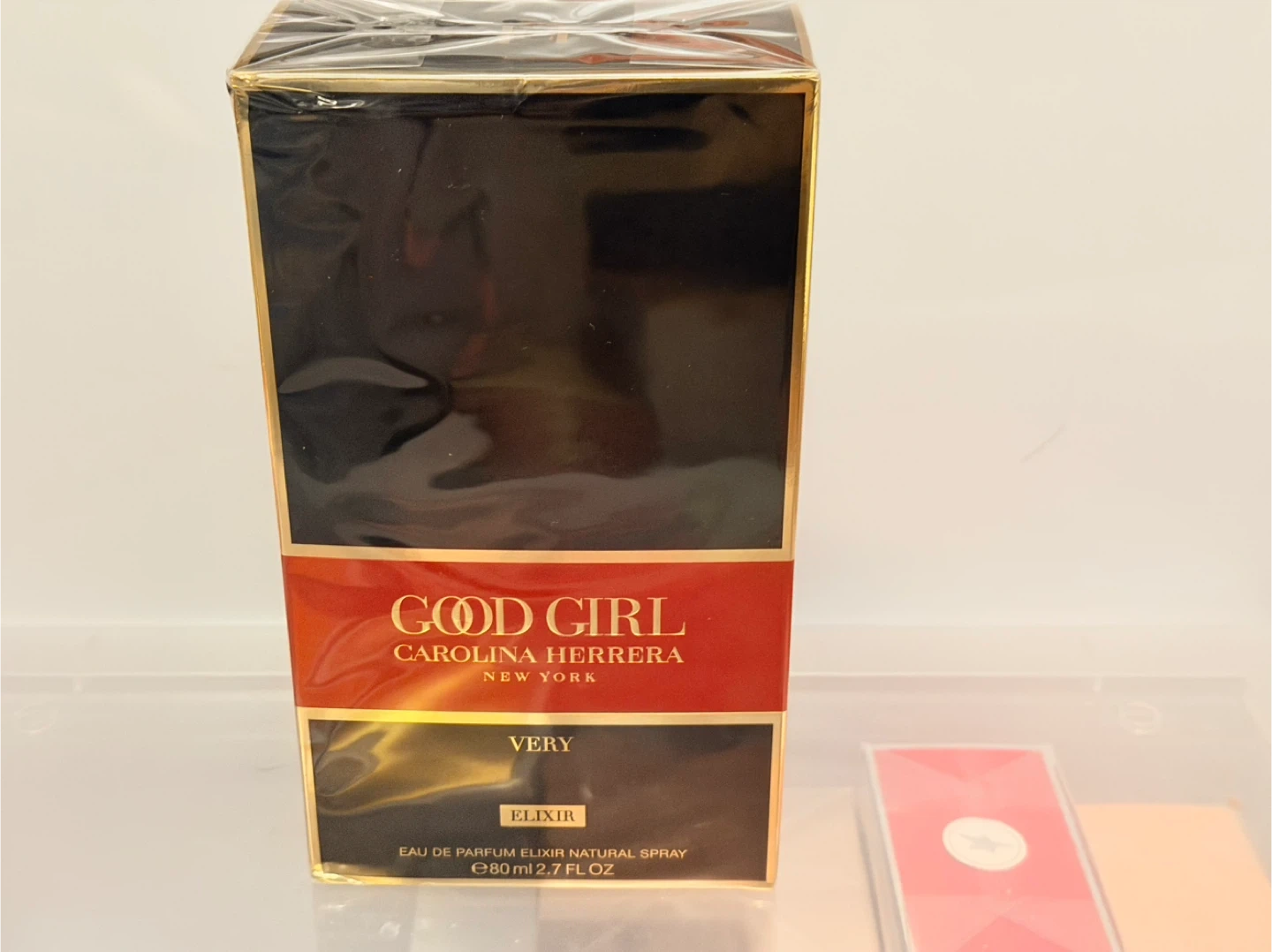 This is the Carolina Herrera Good Girl Very Elixir Eau de Parfum Natural Spray. It's an 80ml bottle, which is 2.7 fluid ounces. This fragrance is a scent for special occasions.