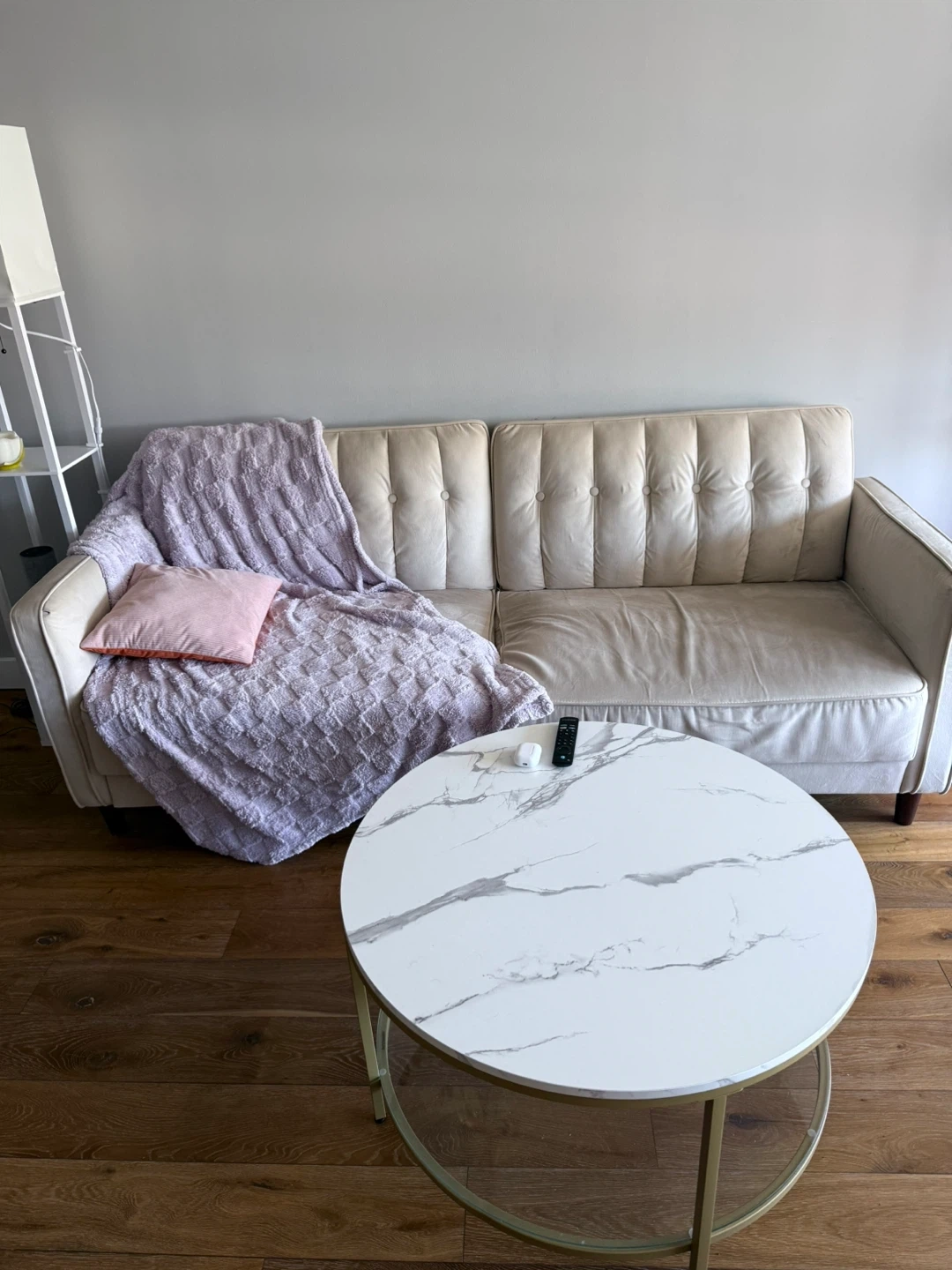 Free couch - structurally solid, cosmetic stain only. This is a large sofa that comfortably seats 3. Can be covered with a throw (like I have done). Will sell with cushion and throw. Pick up available only between 24-27th Feb