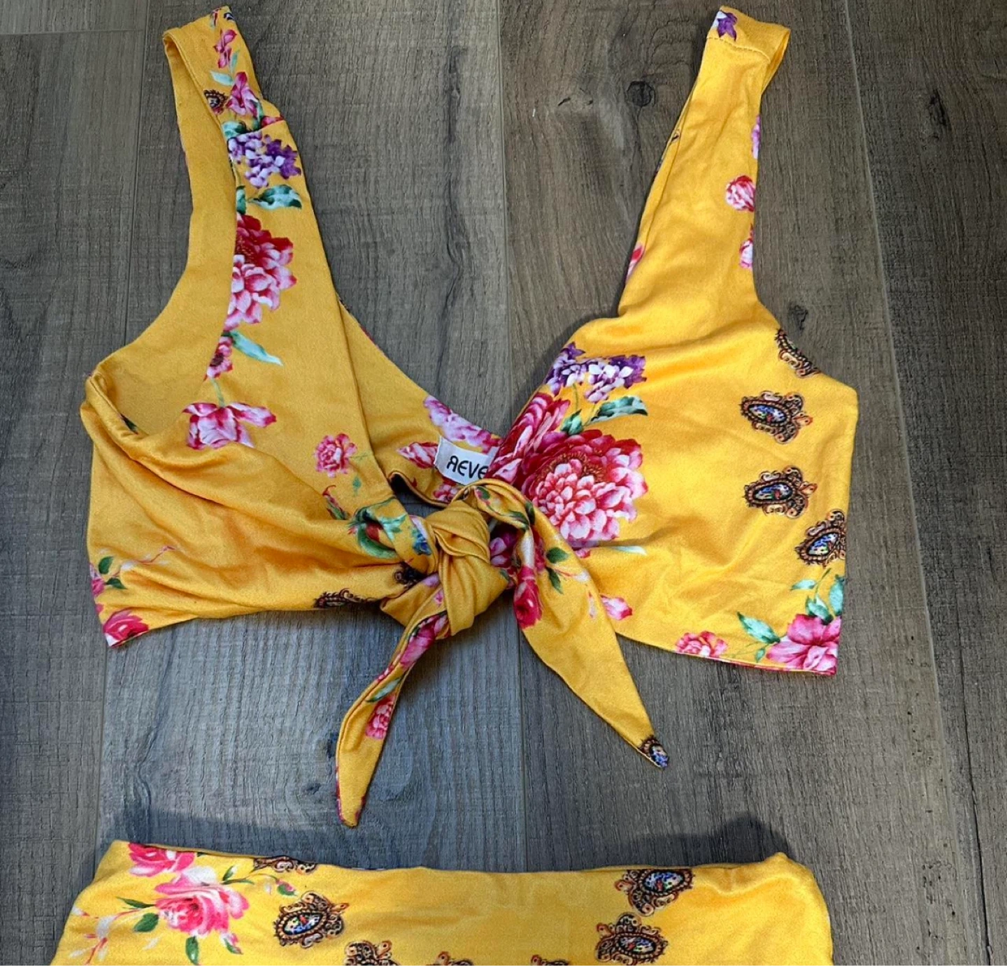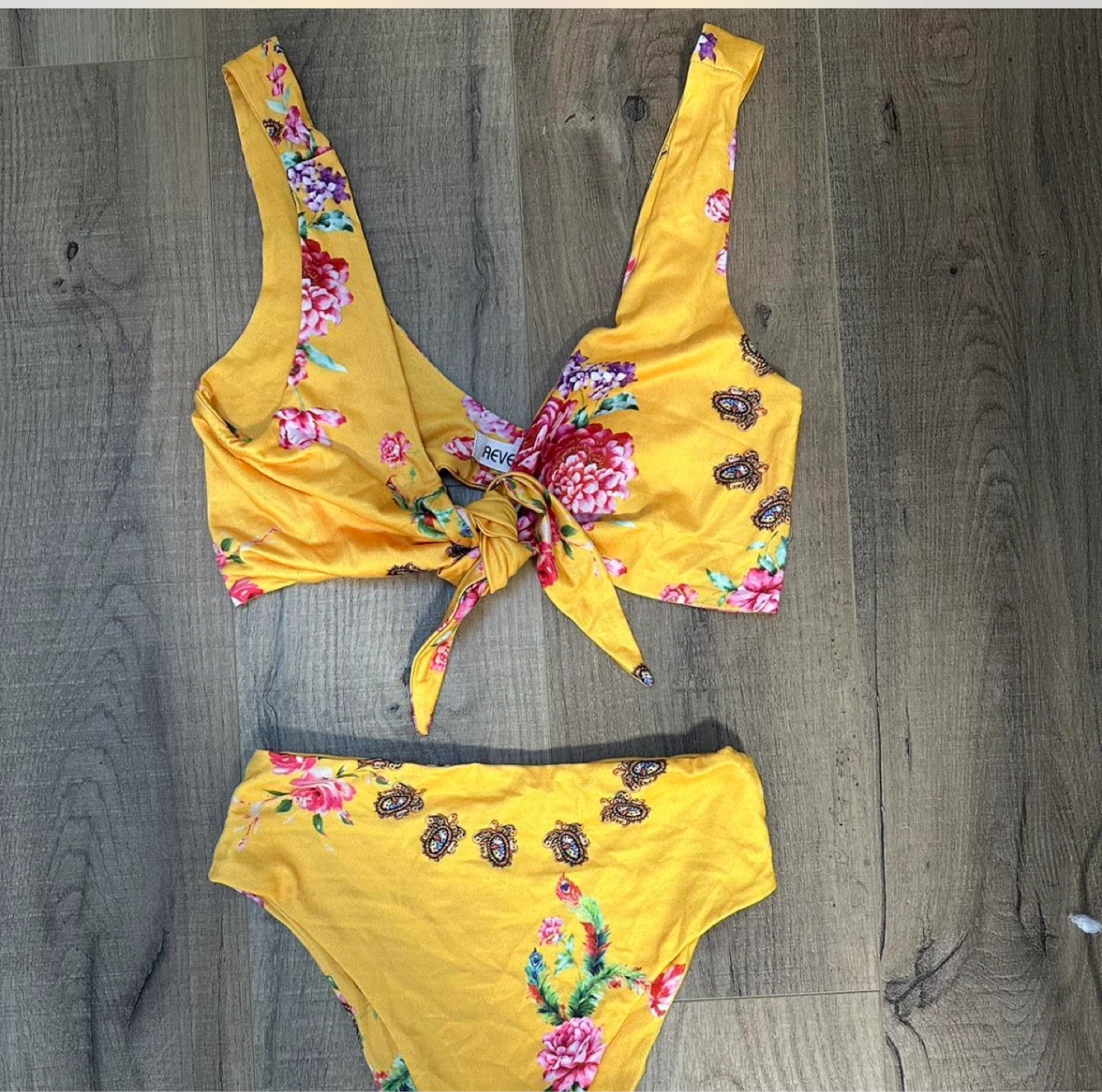 Yellow floral REVE tie-front bikini set