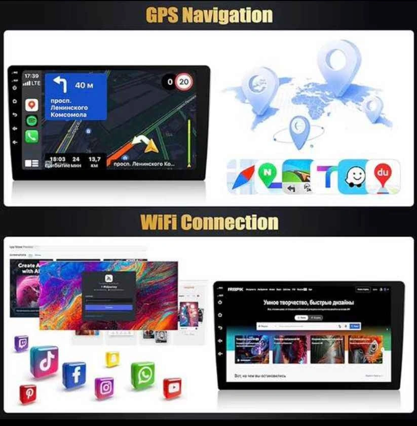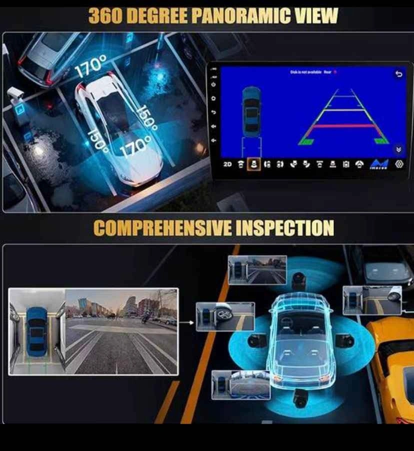 8 Core Android 15 Car Radio with Carplay Stereo Android Auto, 9 Inch Touch Screen, Bluetooth, FM RDS, WiFi, GPS Navi, SWC, and AHD Backup Camera with 360° Panoramic View.