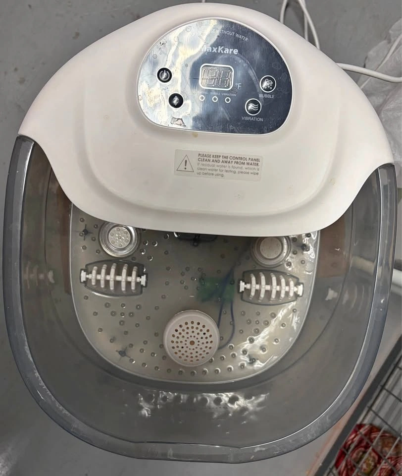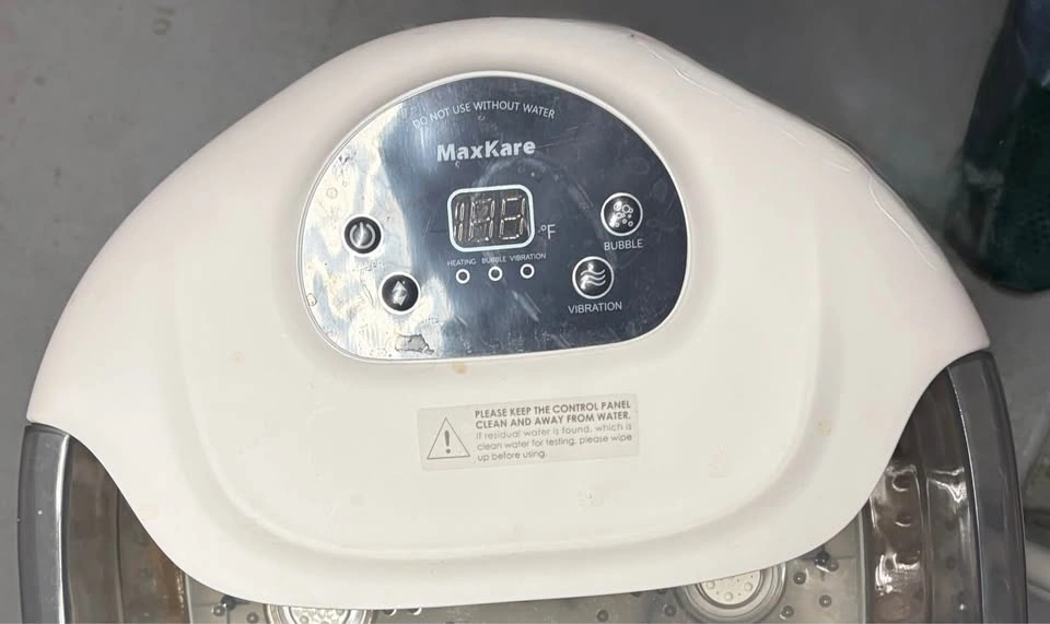 Give your feet a spa treatment at home with this MaxKare Foot Spa Bath Massager. Features adjustable heating (up to 118°F), calming bubble function, and vibration to help soothe tired feet after a long day. Built-in massage rollers add gentle stimulation while you soak. Digital control panel makes it easy to turn heat, bubbles, and vibration on or off.