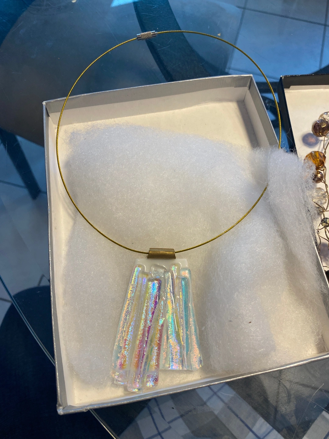 One has a blurred glass look and a solid chain, the second is made up of various coloured stones/jewels.