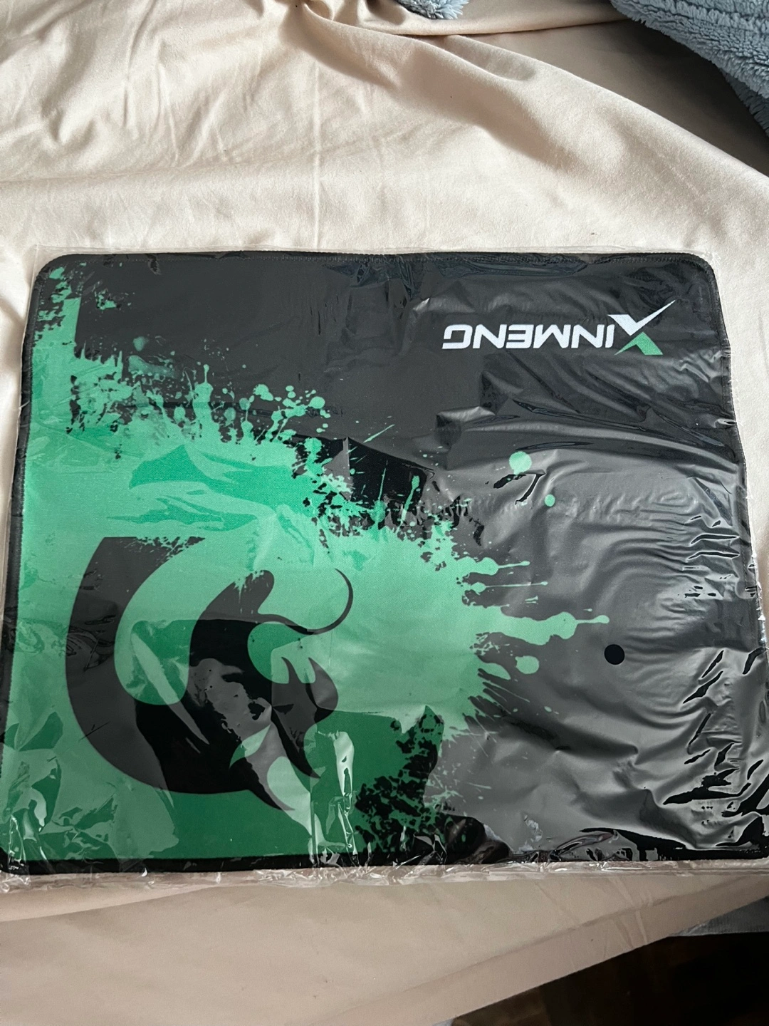 10Large mouse pad. Features a black and green design. A great addition to any gaming setup, providing a smooth surface for your mouse to glide on. Brand new