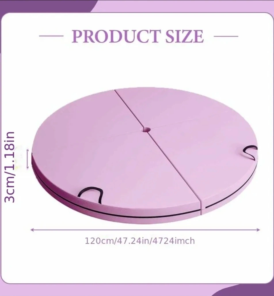 This is a pink pole dancing stage base platform. It measures 120cm in diameter and 3cm in height. This base is designed for pole fitness and dance. It's made of durable materials. 🧡