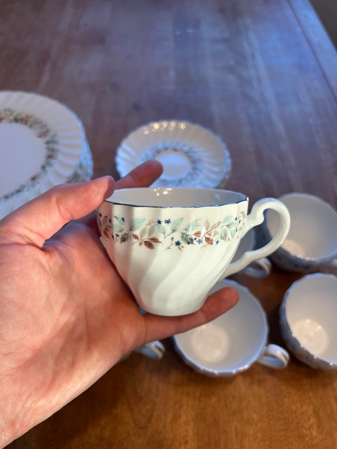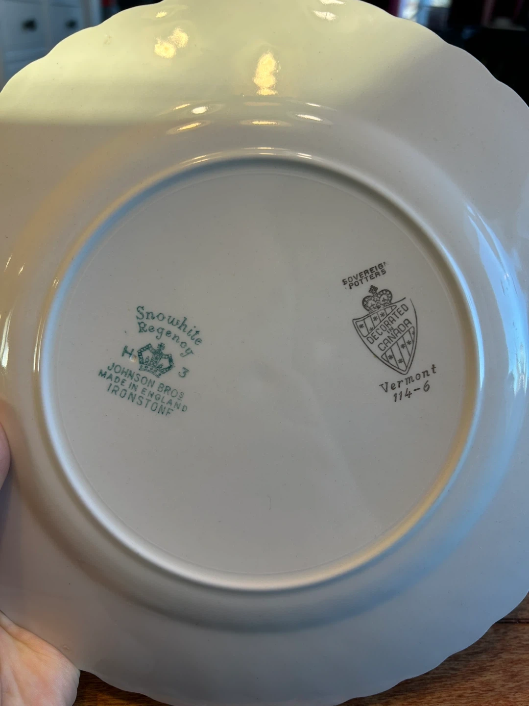 Selling a beautiful vintage snowhite Regency Johnson BROs dinnerware set! This set includes plates, bowls, and teacups, all in excellent condition. The delicate floral pattern and elegant design make it perfect for special occasions or everyday use. Add a touch of vintage charm to your dining experience!