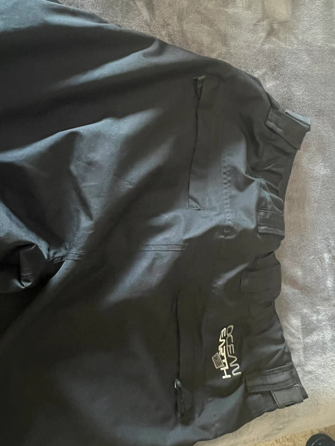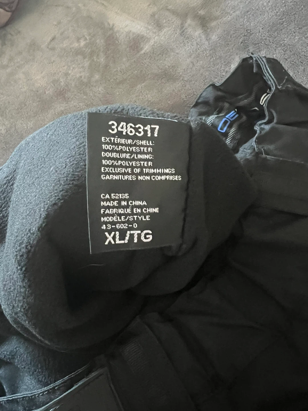 EUC - Size XL, Black in color, worn twice. Performance-oriented, straight-leg cut. Water-resistant polyester outer shell with a warm fleece lining. Reinforced stress areas. Equipped with cargo pockets, zippered hand pockets, and rear pockets. Adjustable Velcro waistband for a custom fit. Inseam is approx 32 1/2β