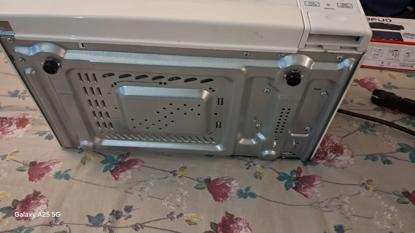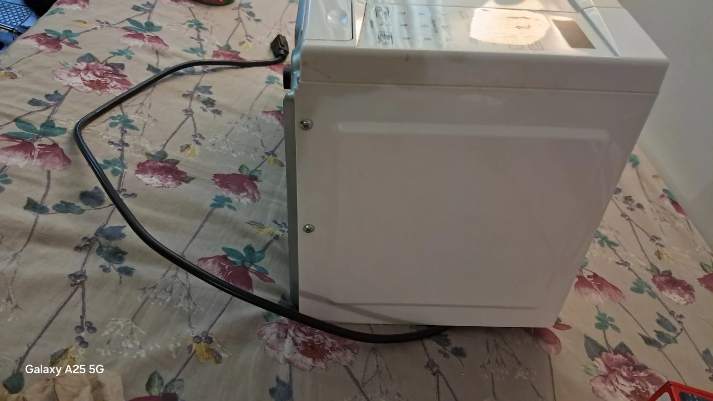 White compact microwave oven. It has several preset cooking options and a digital display. Perfect for small kitchens or dorm rooms! Delivery also available depend on distance a little bit charges