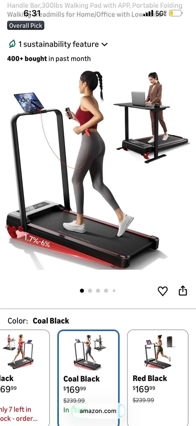 This walking pad treadmill features a handle bar and supports up to 300lbs. It's designed for home or office use. Incline adjusts from 1.7% to 6%.