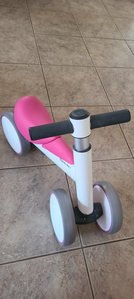 10Here's a cute pink XJD Mini Bike 2! It's a balance bike that's perfect for little ones learning to ride. It's in excellent condition as it was only used indoors. Ready for a new home! Great for toddlers!
