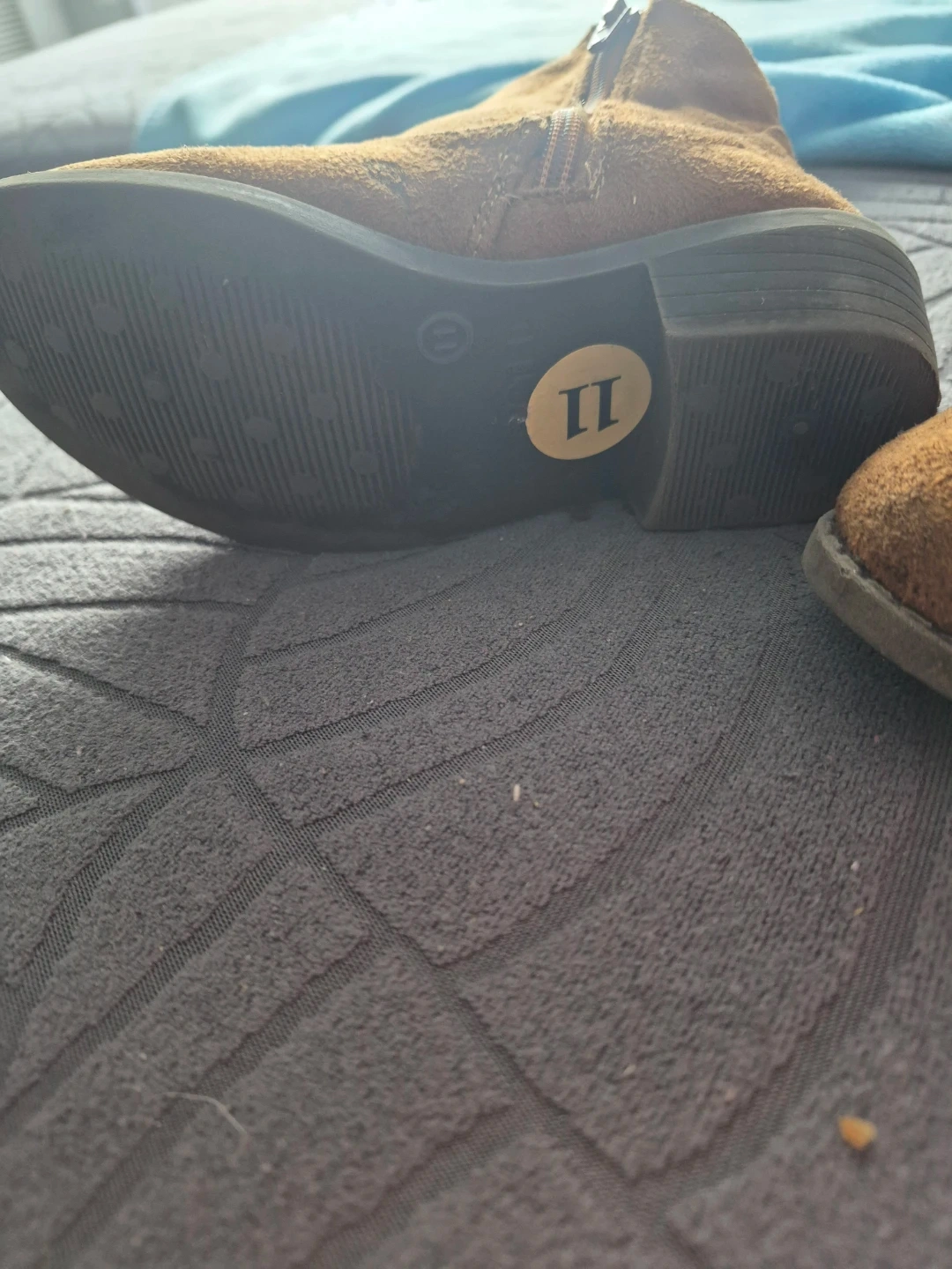 These cute brown ankle boots feature a faux suede material and decorative fringe on one side. They have a zipper closure for easy on and off. Size is 11.