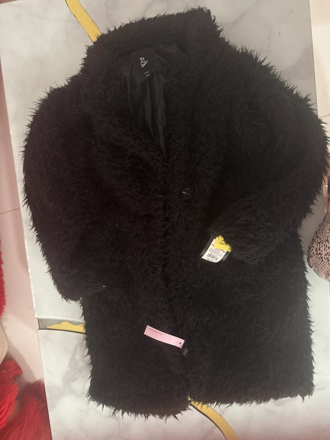 Art Class Black Faux Fur Coat - Size L (10/12)