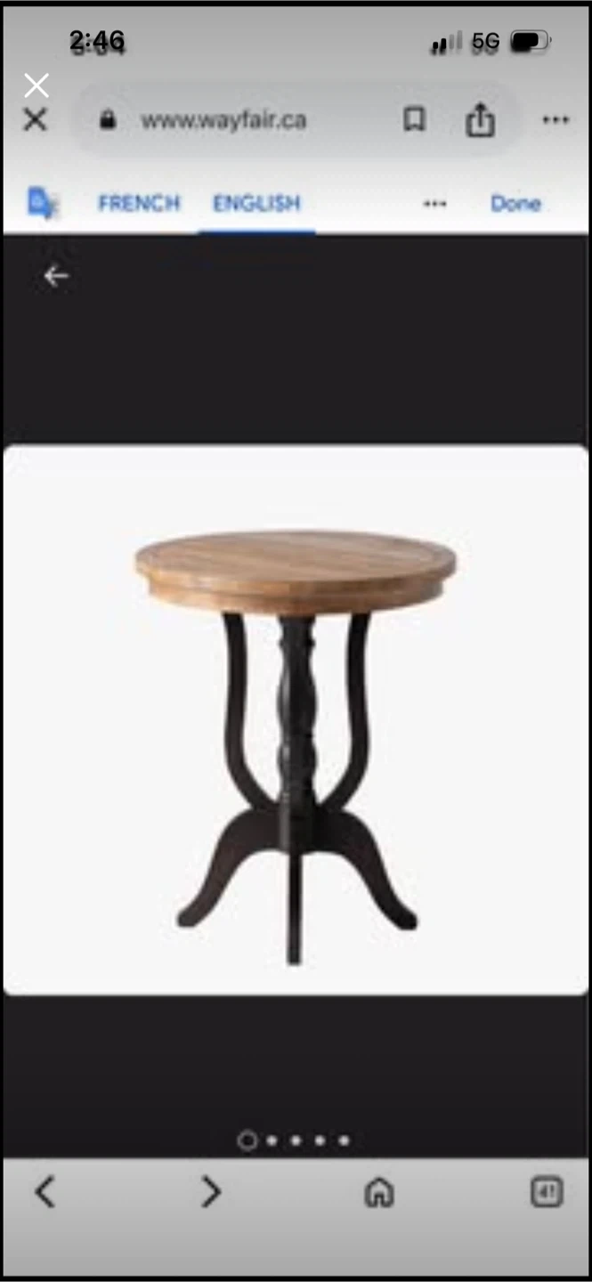 This accent table has a round distressed wood top and a dark, sleek base. It's 29" tall with a 24" diameter top. This table's unique curved legs add character to any room.