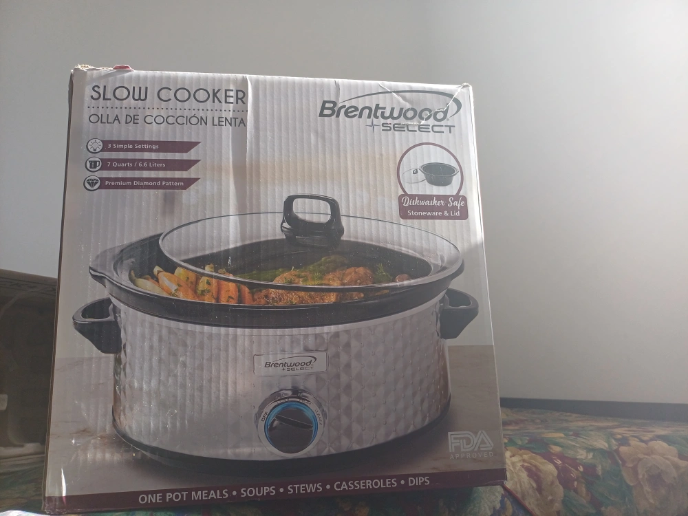 Selling a Brentwood slow cooker in great condition! It's a 7-quart capacity, perfect for one-pot meals, soups, stews, casseroles, and dips. The stoneware and lid are dishwasher safe, making cleanup a breeze. It also has 3 simple settings. Comes with the original box!
