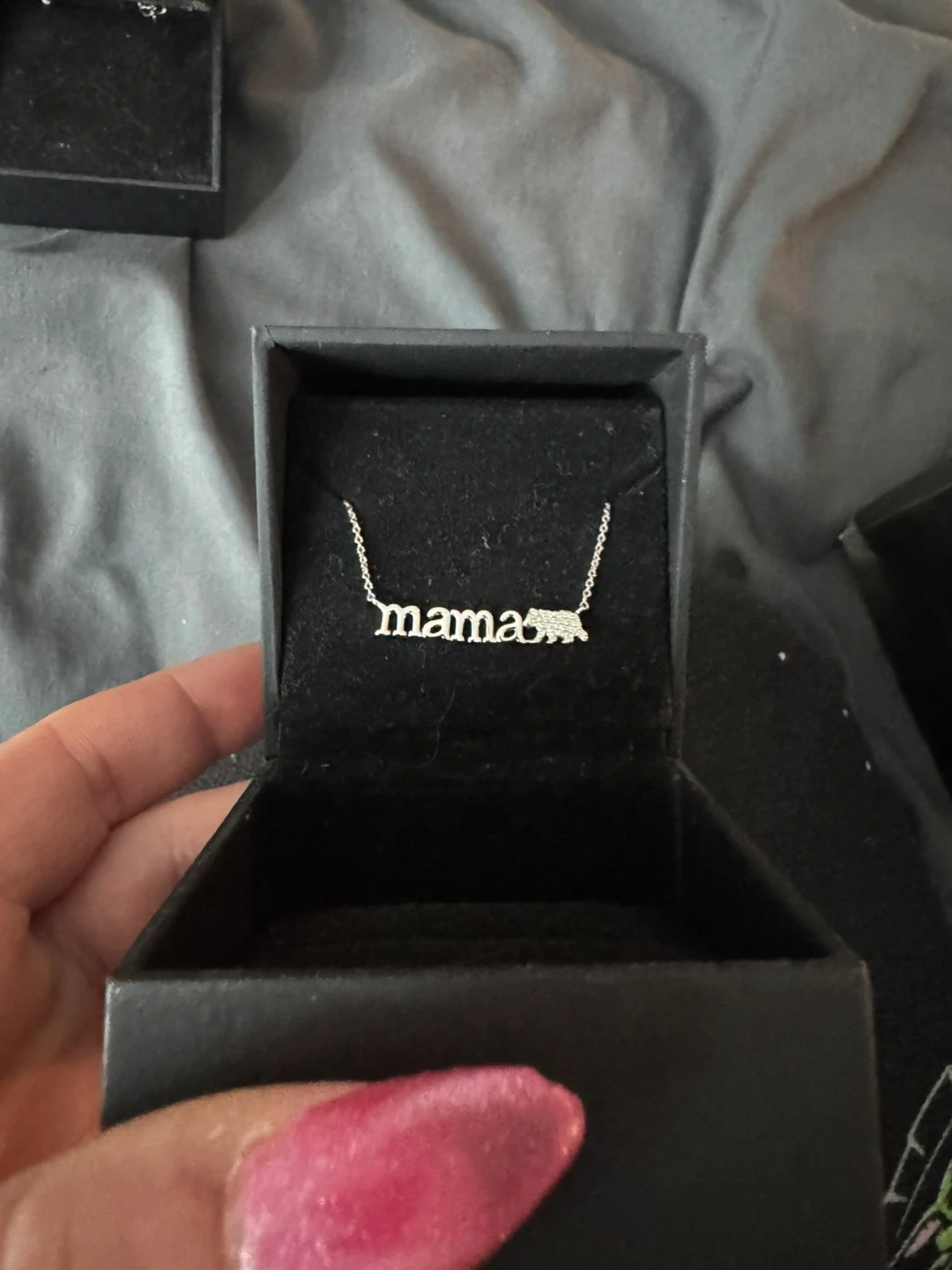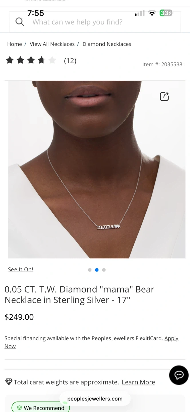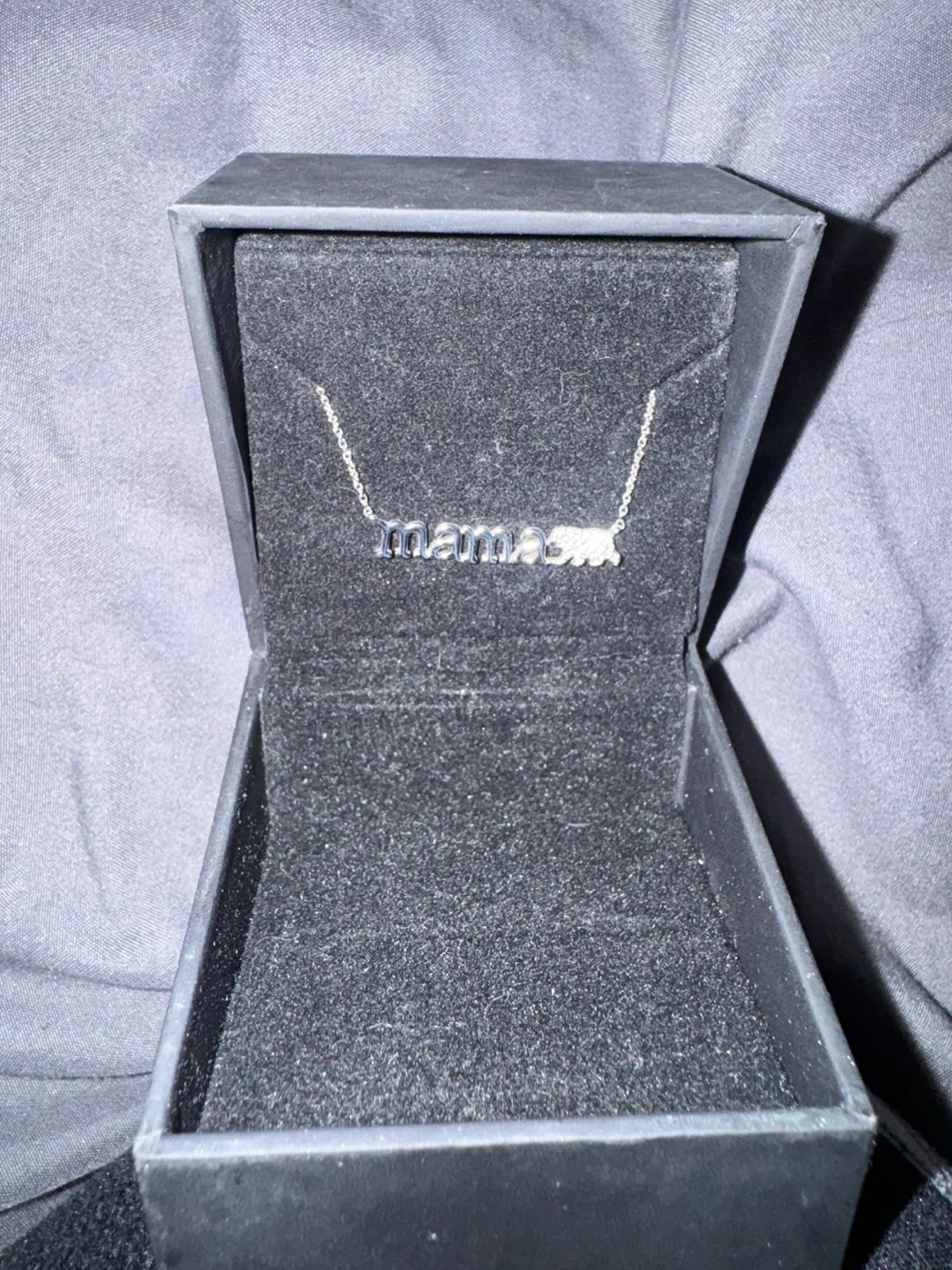 This diamond "mama" bear necklace is crafted in sterling silver. It's 17 inches long and features 0.05 CT. T.W. diamonds. The necklace comes in its original box.