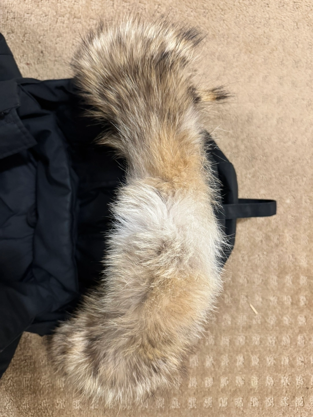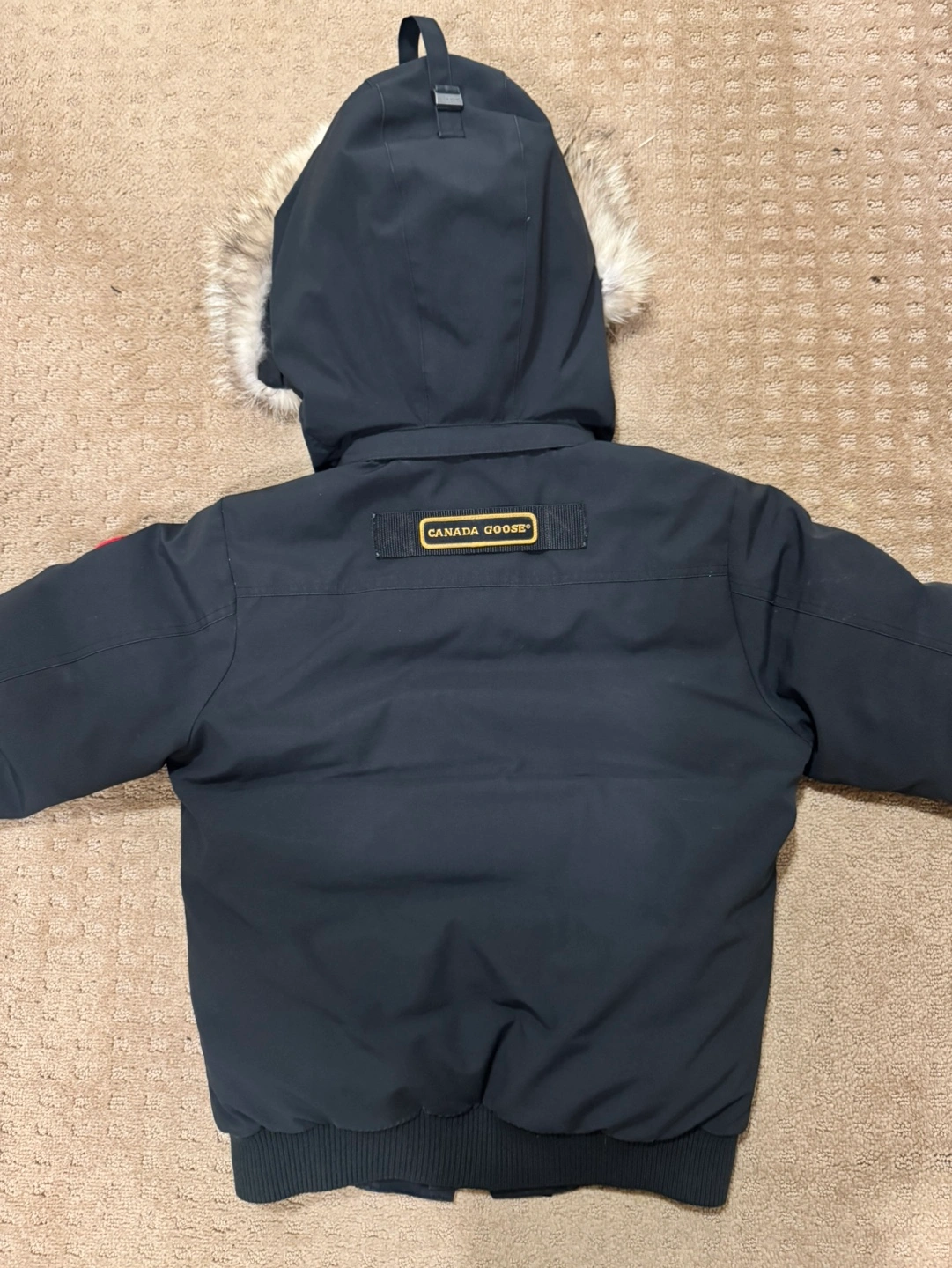 Women's black Canada Goose bomber jacket. Fits like medium Features a fur-trimmed hood and multiple pockets. Down-filled for warmth. Excellent pre-owned condition.