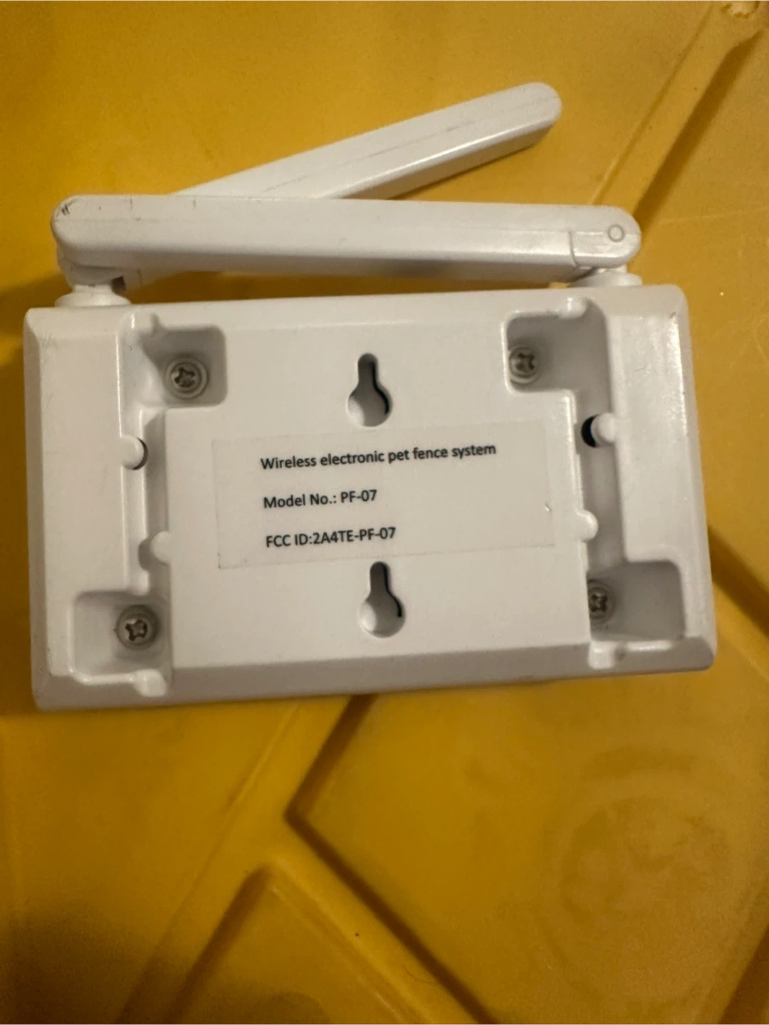 Wireless electronic pet fence system. Model No.: PF-07. This system uses a wireless signal to create a boundary for your pet. It's designed for reliable containment. Includes adjustable settings for different yard sizes.
